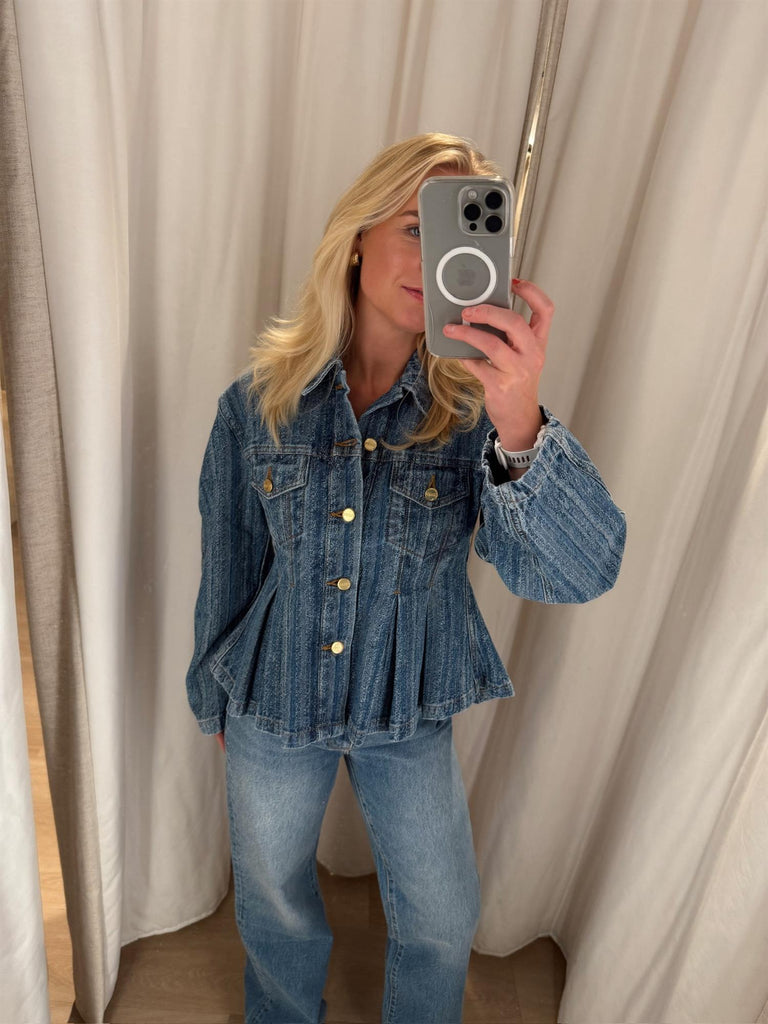GANNI - Structured Denim Fitted Jacket Mid Blue Stone - Mid Blue Stone