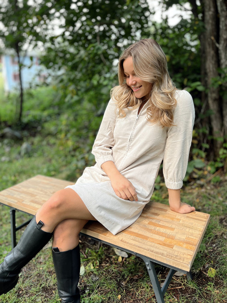 GANNI - Seersucker Corduroy V-neck Mini Dress - Chicory Coffee