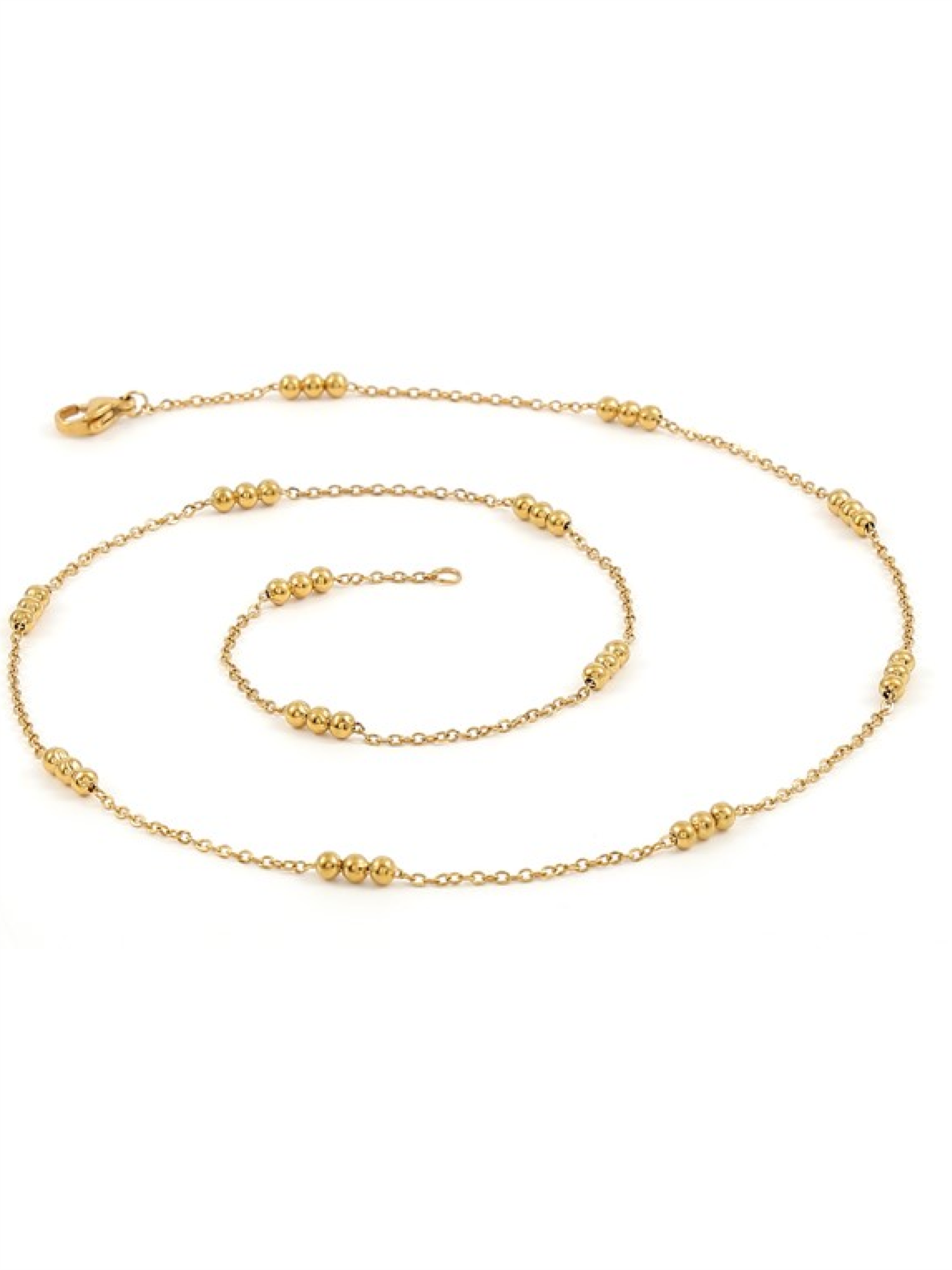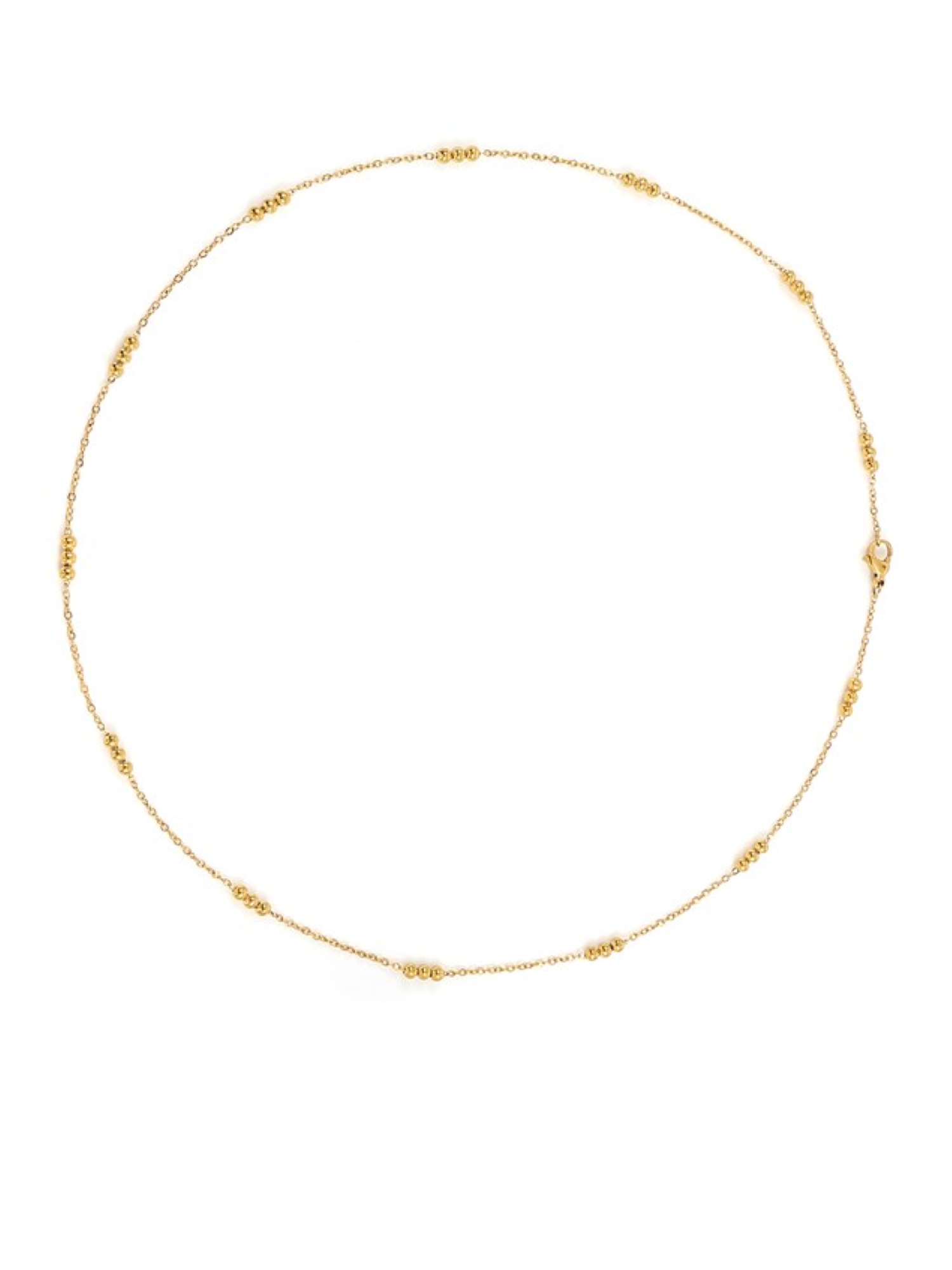 Anica-halskjedet kombinerer en elegant kjede med små perledetaljer for et delikat og sofistikert uttrykk. Laget av rustfritt stål og belagt med 18k gull, er dette halskjedet både stilfullt og slitesterkt – perfekt for både hverdagsbruk og spesielle anledninger.