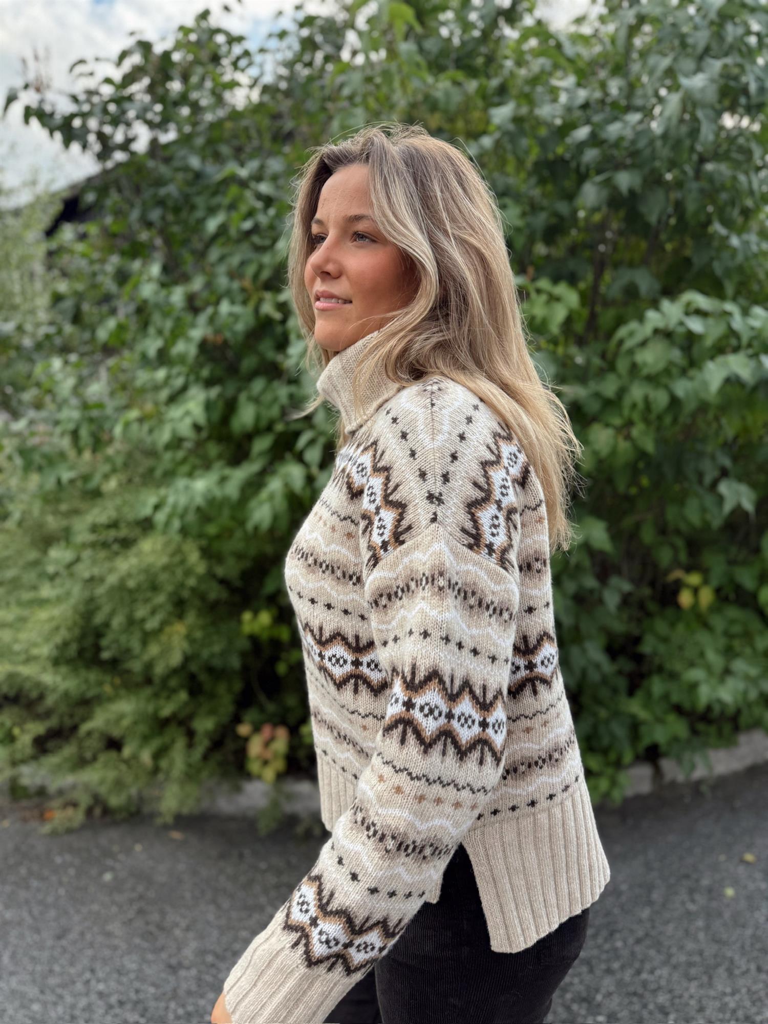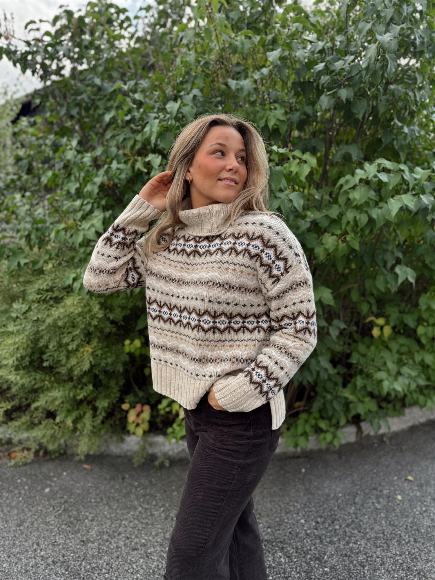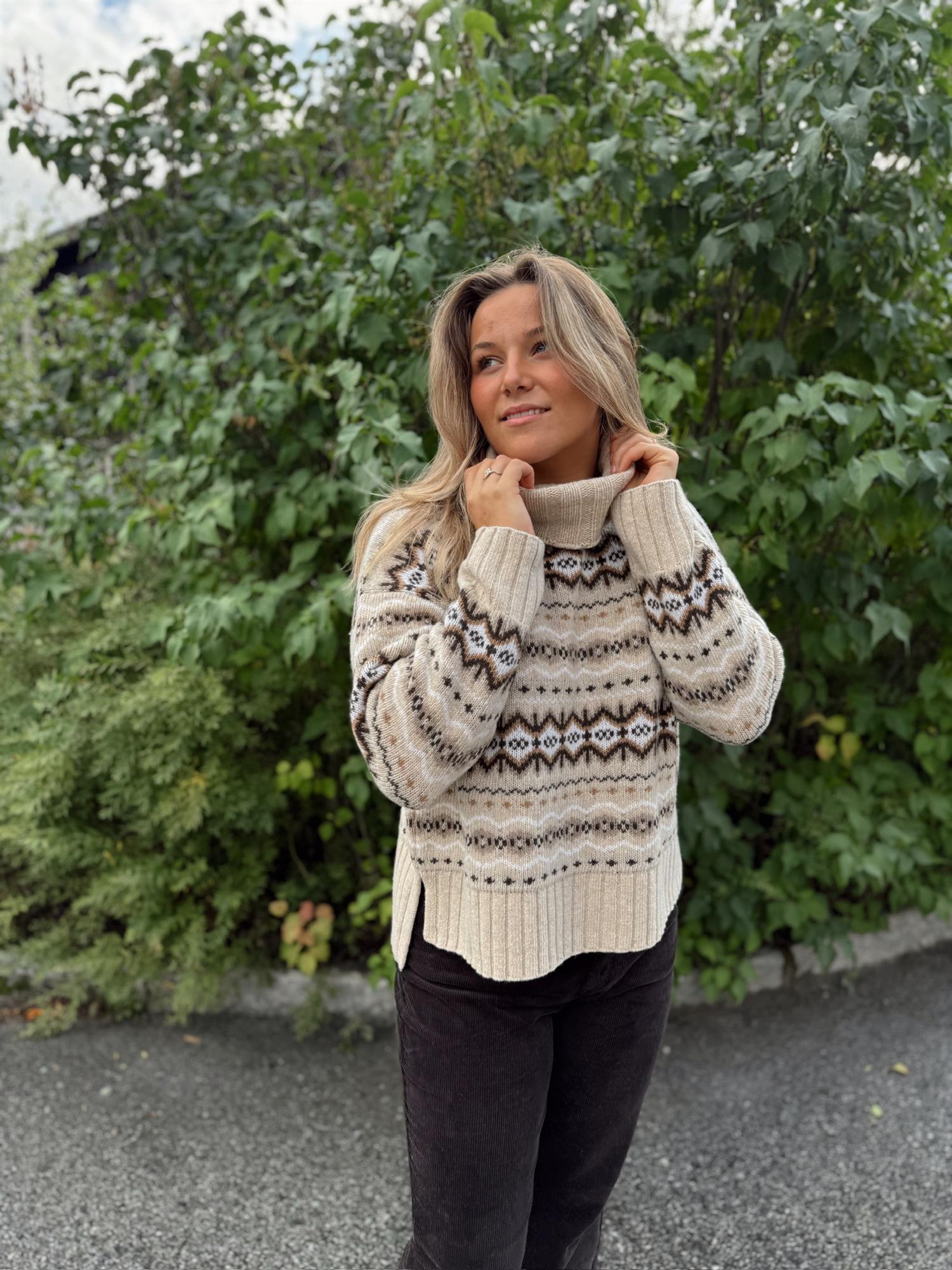 Gjør deg klar for kalde dager med den myke og varme Helen Knitted Jumper fra Barbour. Denne chunky strikkegenseren har et klassisk Fair Isle-mønster i lune, harmoniske farger som gir en tidløs og koselig look. Den høye rollneck-kragen og ribbestrikkede detaljer gir ekstra komfort og varme, mens splitt i sidene sørger for en flatterende og avslappet passform.