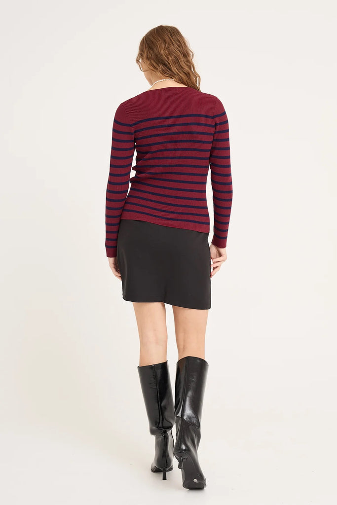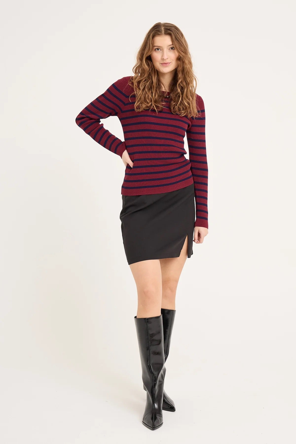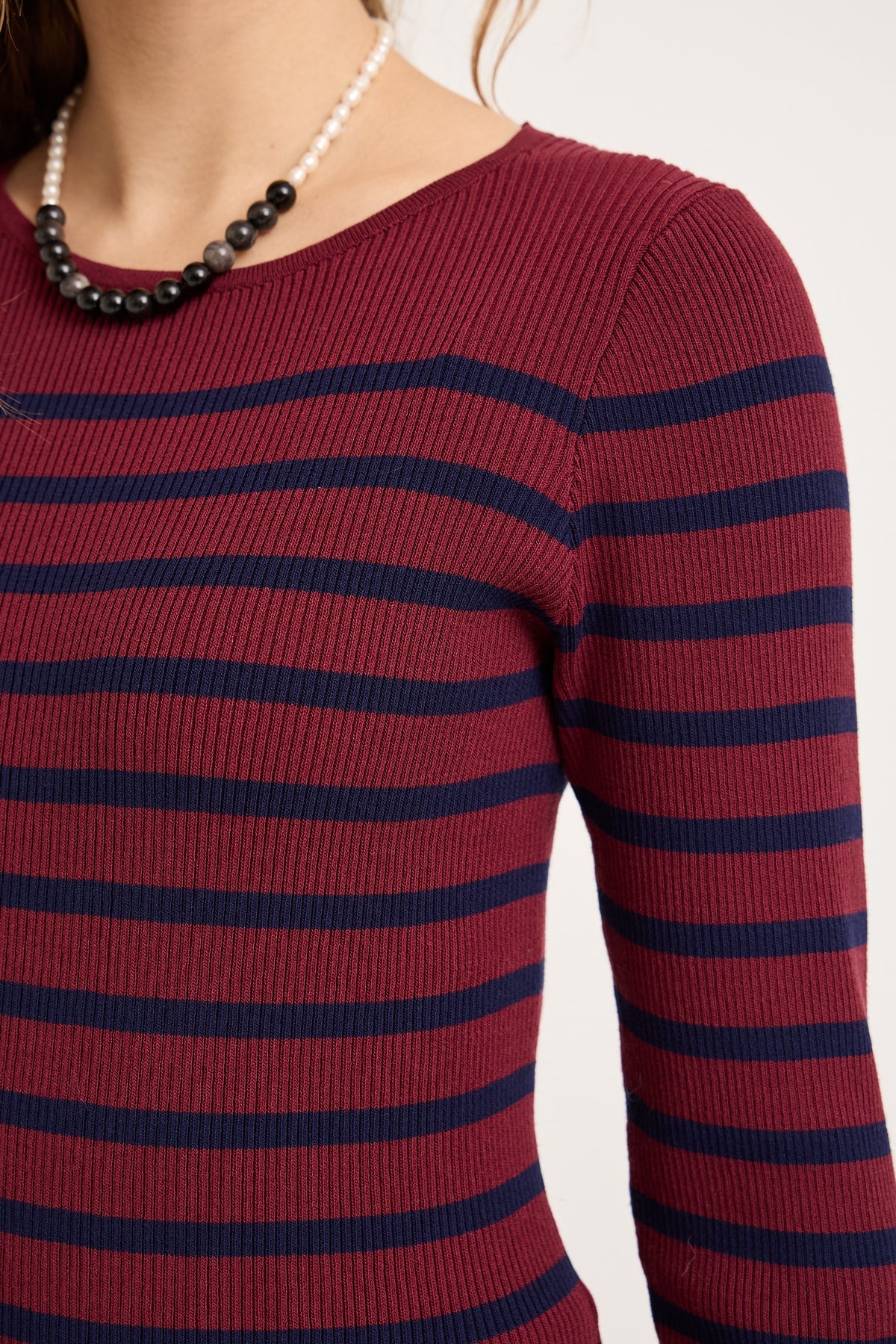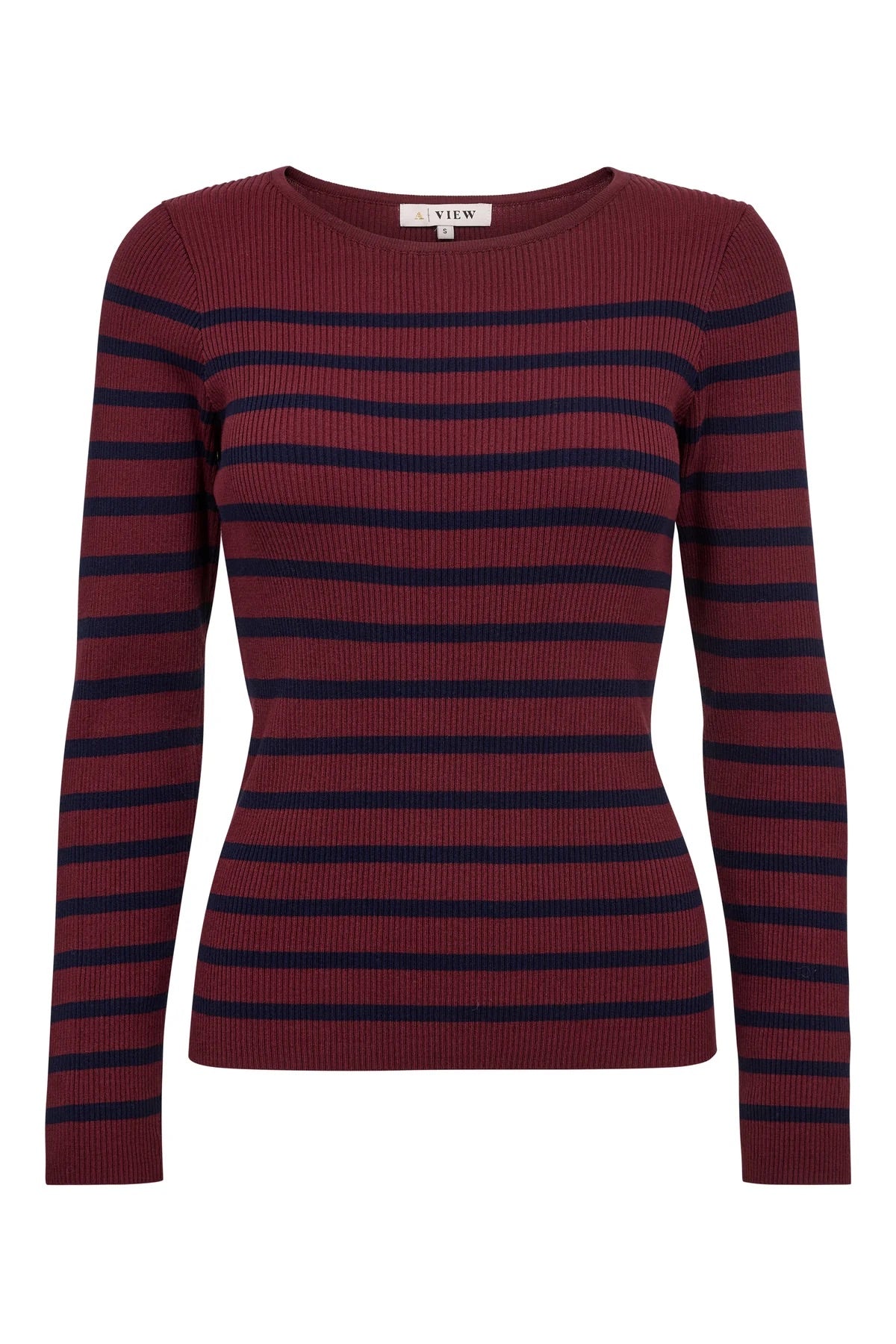 A-View - Rib Stripe Knit Blouse - Burgundy/Navy