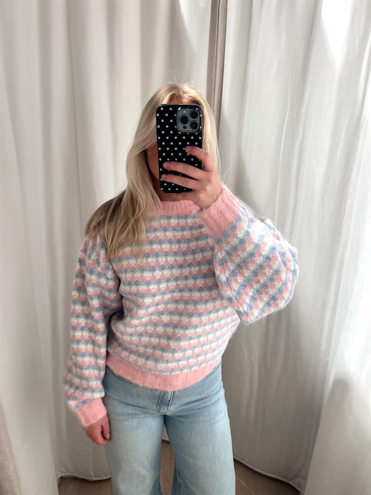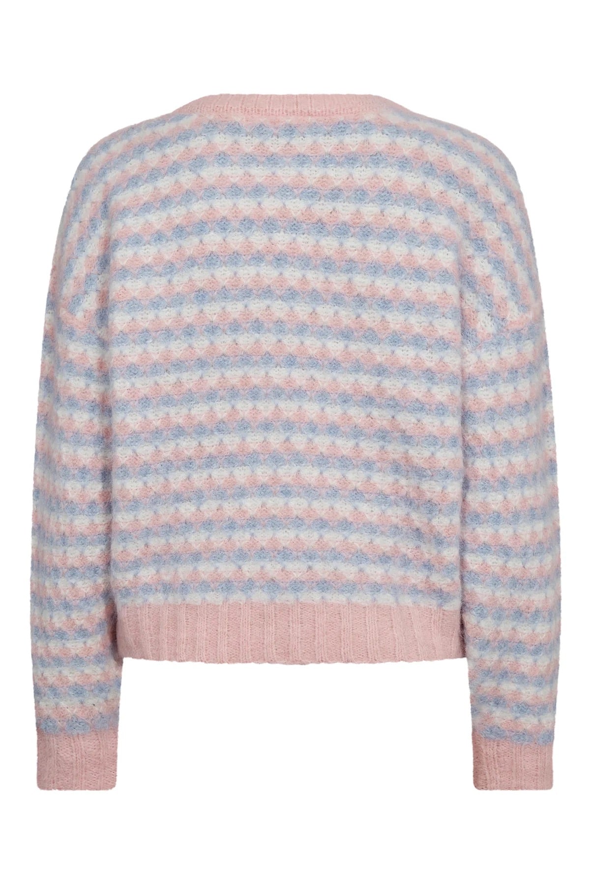 Sassi Knit Pullover er en myk og lun strikkegenser med et dekorativt, flerfarget mønster som gir antrekket et levende uttrykk. Genseren har rund hals, lange ermer og ribbestrikkede kanter som sikrer en behagelig og klassisk passform. Den avslappede silhuetten gjør den enkel å style – perfekt både til hverdags og til kjøligere dager.
