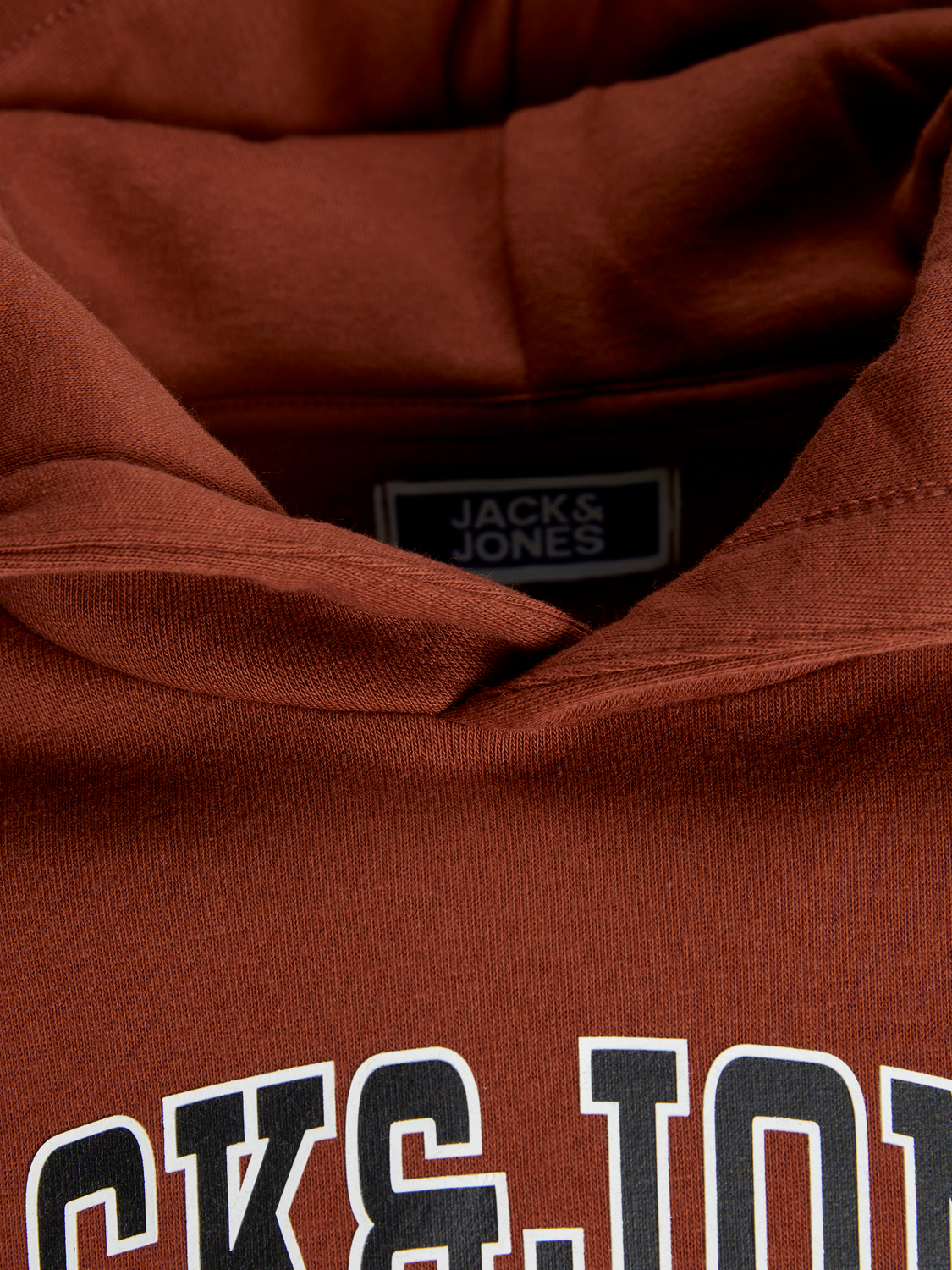 JACK&JONES JUNIOR - JJECALEB VARSITY SWEAT HOOD NOOS JNR - Burnt Henna