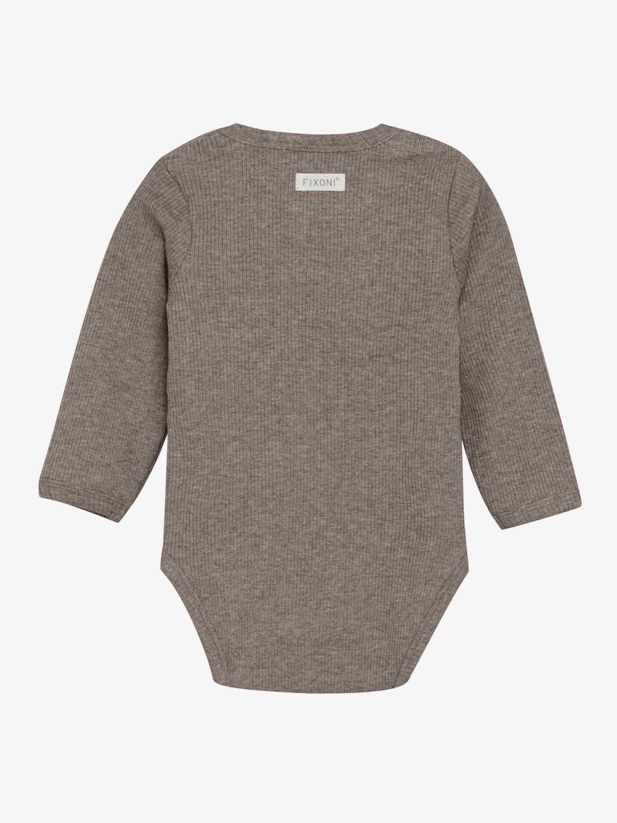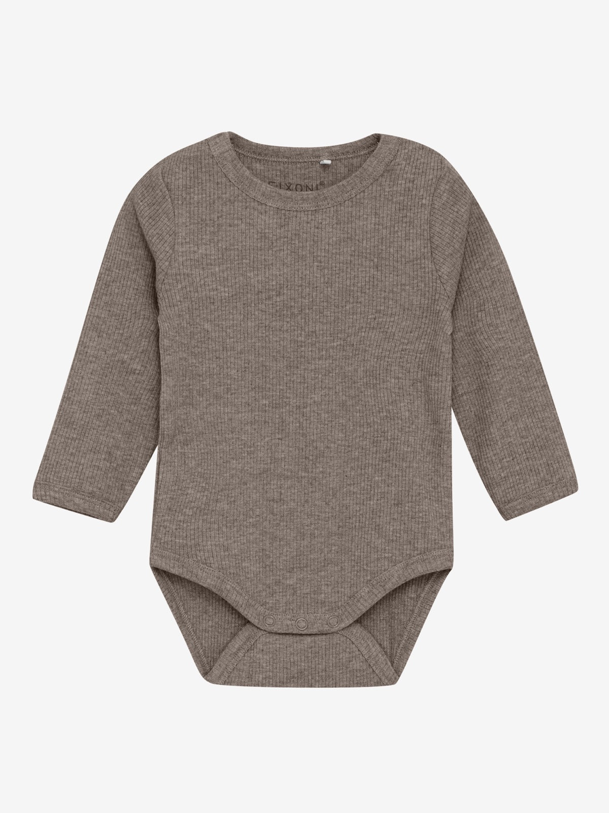 Langermet body fra FIXONI. Denne ensfargede bodien er laget i en myk melangkvalitet. Praktiske trykknapper på skulderen og mellom bena gjør den enkel å ta på og av.