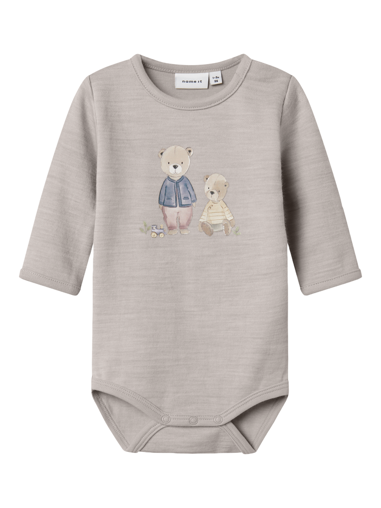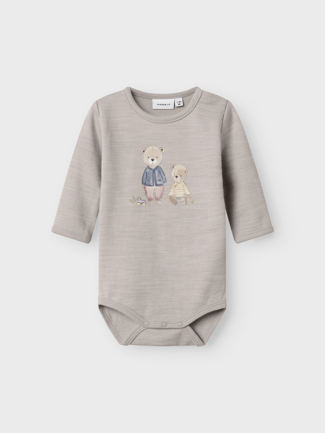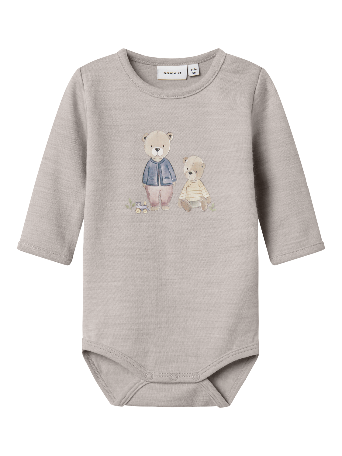 Legg til et mykt og behagelig ullplagg i barnets garderobe med denne bodyen fra NAME IT. Laget av naturlige materialer, gir denne bodyen både komfort og varme, perfekt for kalde dager. Ullens unike egenskaper gjør at den holder på varmen når det er kaldt, samtidig som den absorberer svette på varmere dager, noe som gjør den ideell for året rundt.