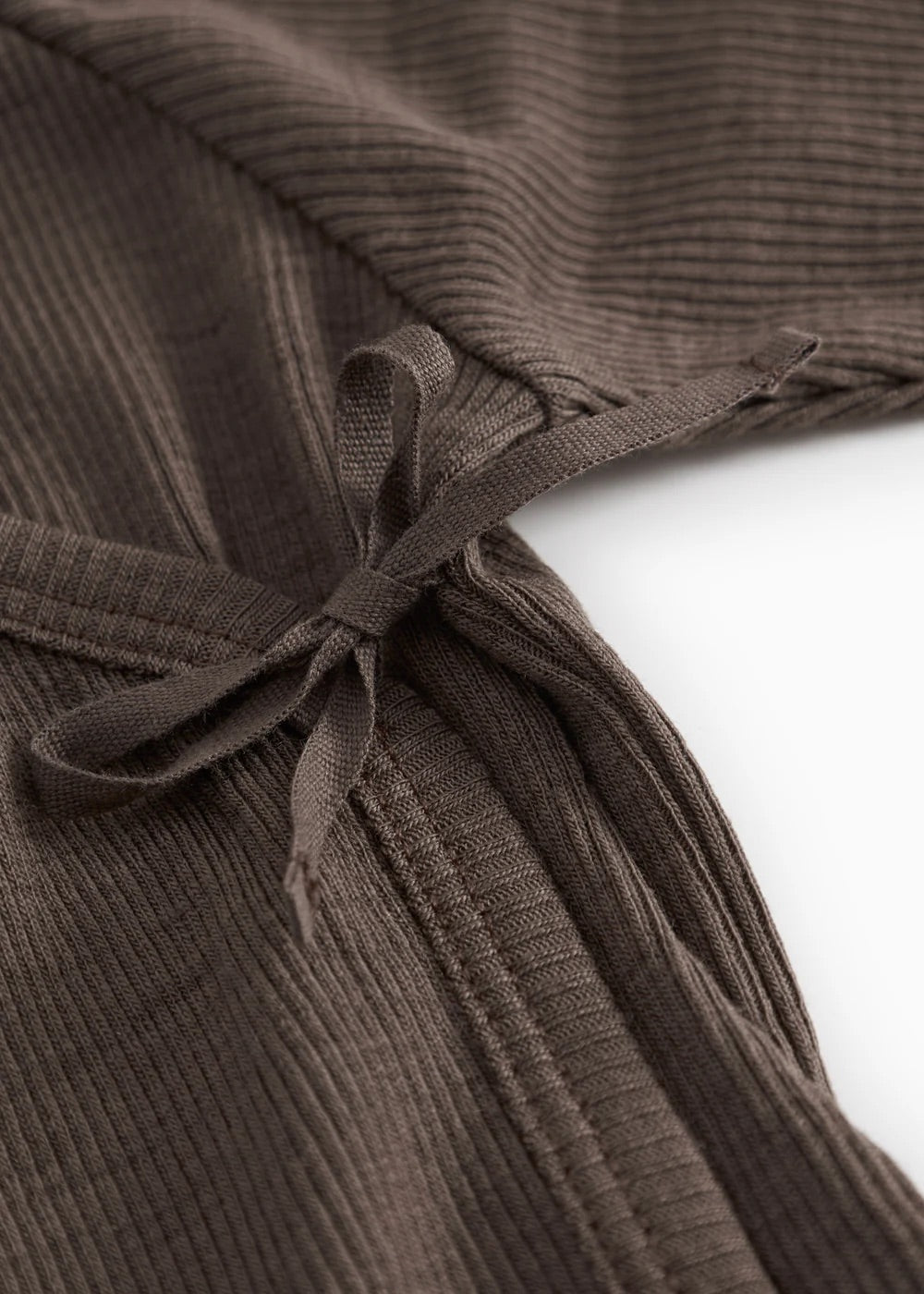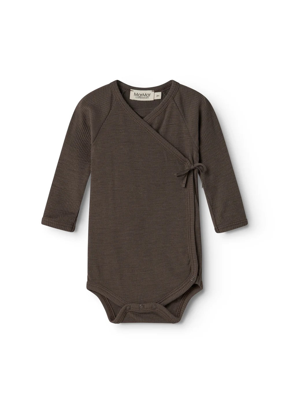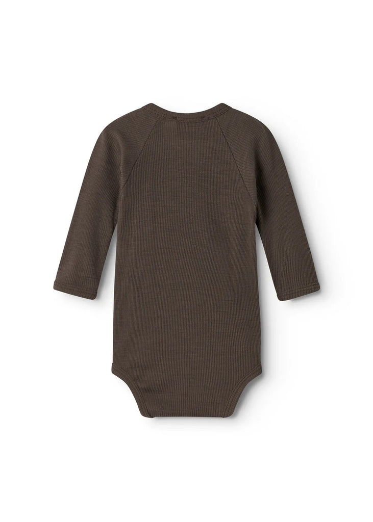 Myk og behagelig langermet bodystocking i merinoull til nyfødte. Omlag lukking gjør det enkelt å ta bodystockingen på og av, mens trykknapper og knytebånd gir trygg og komfortabel passform. Merinoullen holder barnet varmt samtidig som den puster godt, og gjør bodystockingen perfekt som base-lag eller hverdagsplagg for de minste.
