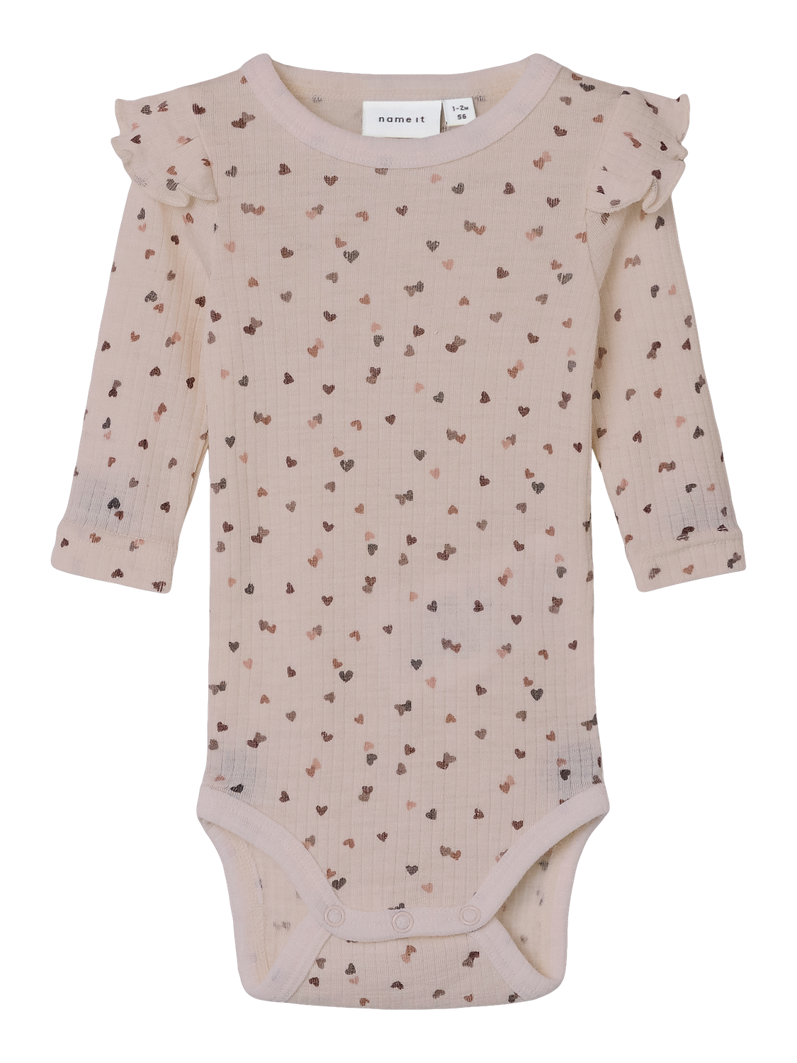 Legg til et stilrent og komfortabelt plagg i barnets garderobe med NBFWOMI WO/MO LS BODY. Denne bodyen er laget av en blanding av merinoull og modal, som gir både varme og mykhet. Den er perfekt for å holde barnet ditt komfortabelt hele året.