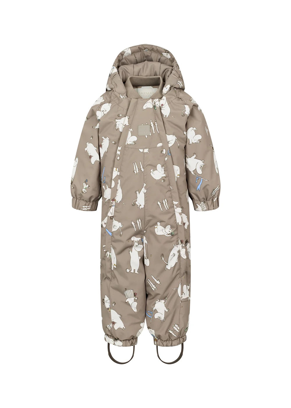 Lett, myk og varm snødress med søtt Mummitroll-motiv. Dressen har to lange glidelåser som gjør den enkel å ta av og på, avtakbar hette og justerbare fotstropper som holder snøen ute. Laget i slitesterkt materiale med Thermolite®-isolasjon, som gir barnet en behagelig og jevn kroppstemperatur uten at dressen føles tung.