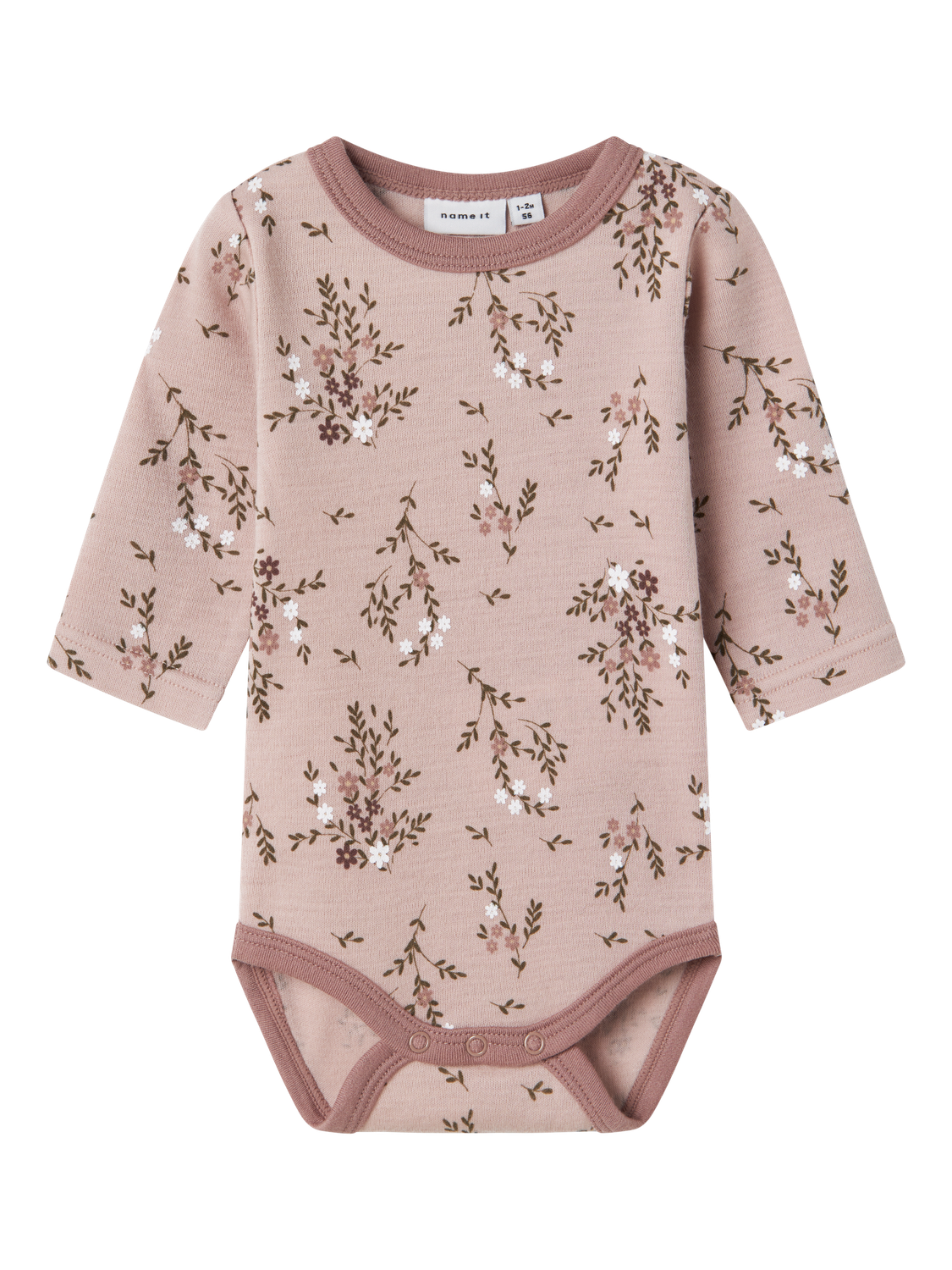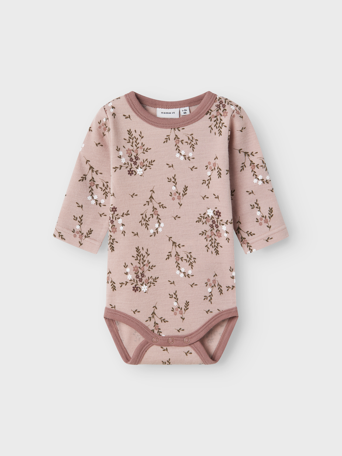 Name It - Nbfwillow Wool Ls Body - Shadow Gray Long Flower