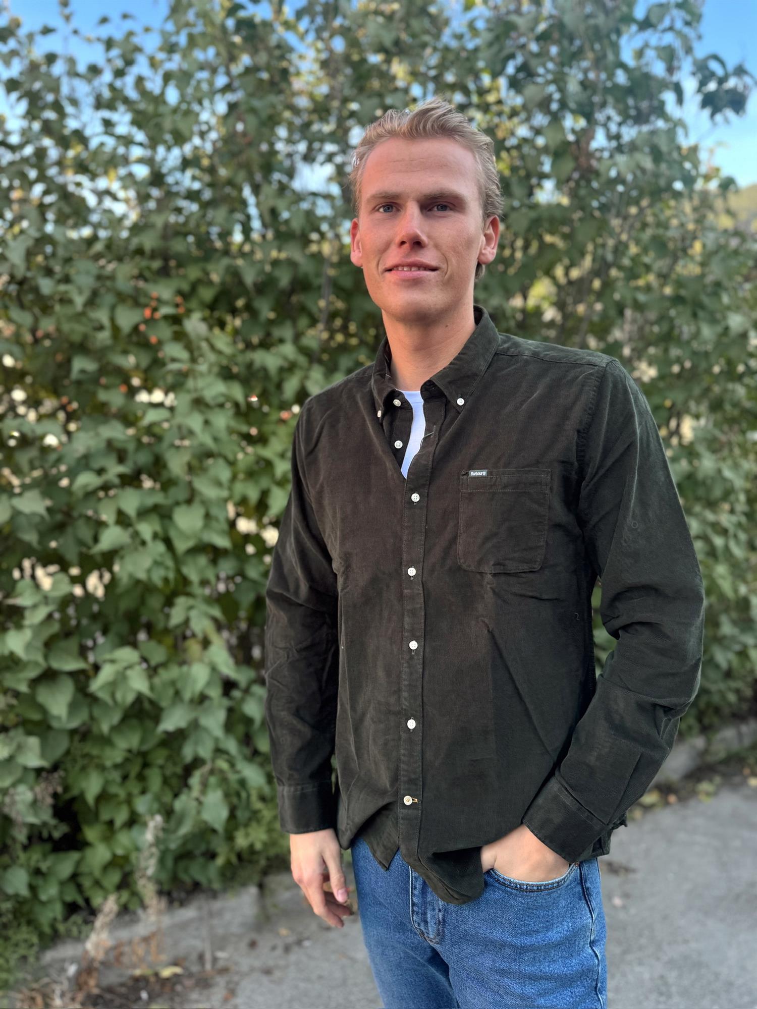 Denne skjorten har en klassisk button down-krage, hvor kragespissene holdes på plass med knapper for et ryddig og stilfullt uttrykk. Den er designet i en regular fit, som gir en behagelig og romslig passform rundt armene og brystkassen, og har en rettere og lengre fasong rundt midjen enn en slim fit. Denne allsidige passformen gir god komfort og bevegelsesfrihet, og passer de fleste kroppsformer. Perfekt for deg som ønsker en skjorte som balanserer stil og komfort til både hverdags og mer formelle anledninger.