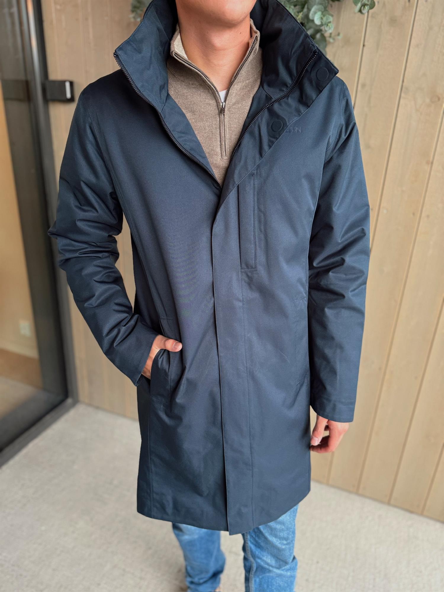 Detaljer: Slim fit, lengde til lår, skjult hette i krage, refleksdetaljer, magnetknapper, YKK-glidelås, tapede sømmer, Bluesign-materiale, Eco DWR-coating, resirkulerte tekstiler.