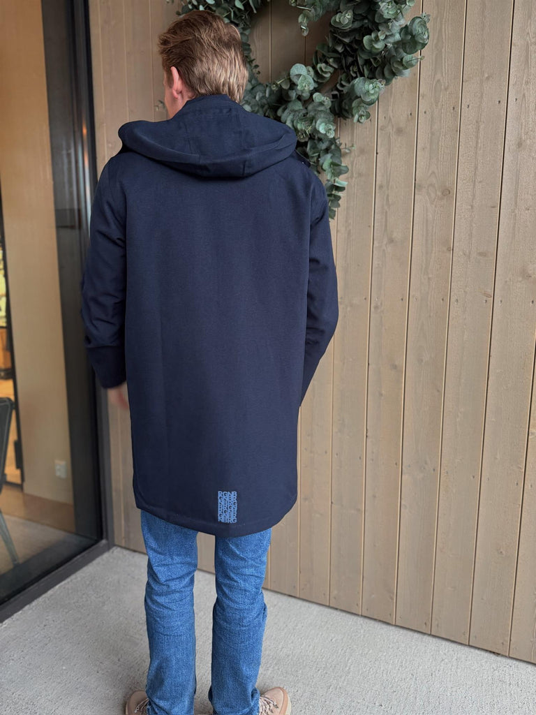 Vestavind er en lett og boxy regnjakke med isolerende vattering (80 GSM) som holder deg både tørr og varm gjennom alle årstider. Jakken er vanntett og designet med praktiske detaljer som avtakbar hette, håndvarmerlommer og to innerlommer ved brystet – perfekt for både hverdag og turer utendørs.