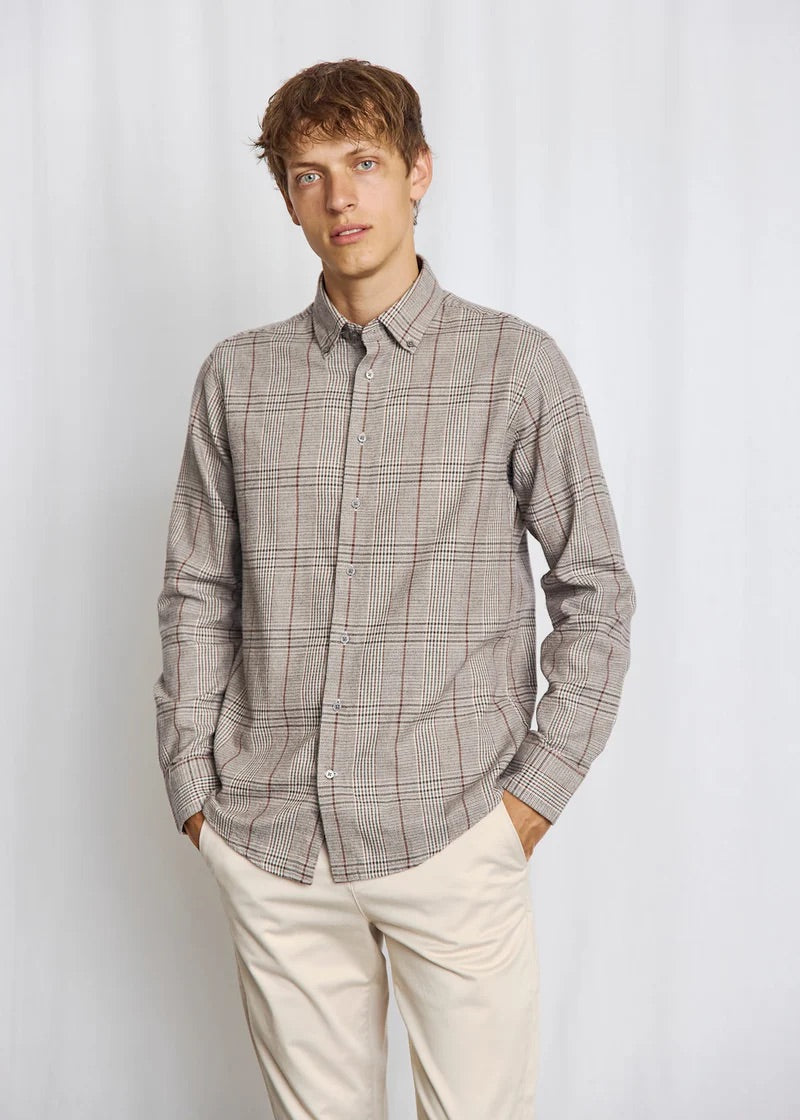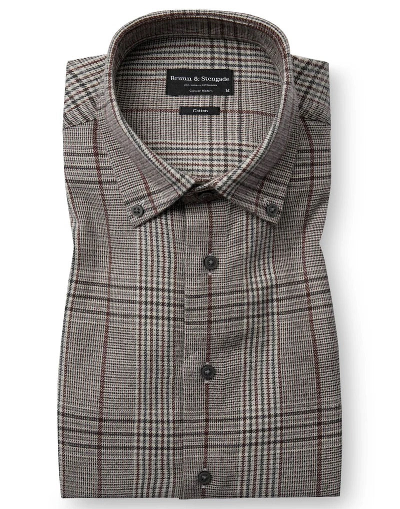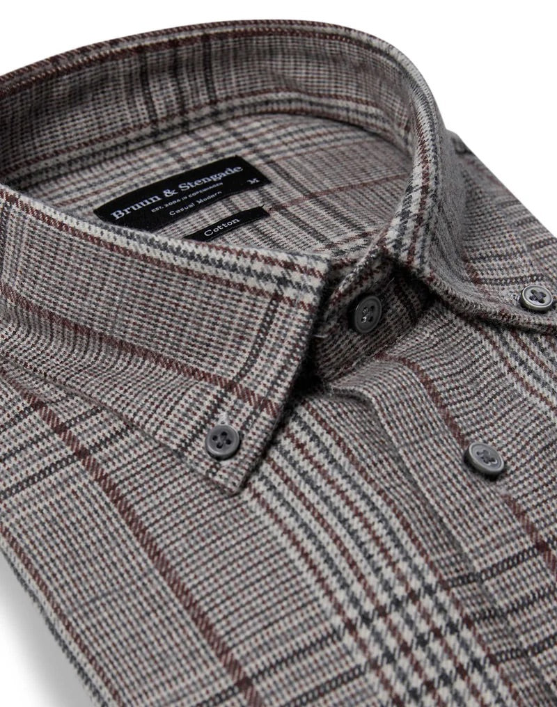 Vår Casual Modern Fit-skjorte er det perfekte valget for deg som liker en litt romsligere passform og en avslappet stil. Den rutete skjorten er laget av 100 % bomull med børstet overflate, som gir en ekstra myk og behagelig følelse mot huden. Designet har klassiske detaljer som button-down-krage, fransk knappestolpe med grå knapper og justerbare mansjetter.