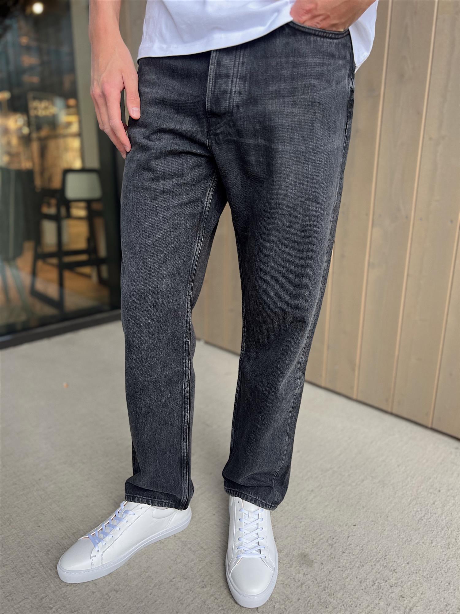Jeans med rett ben og løs passform. Lukkes med knapp og glidelås i gylfen. Designet med fem lommer og belteløkker. Laget av 100% økologisk bomull.