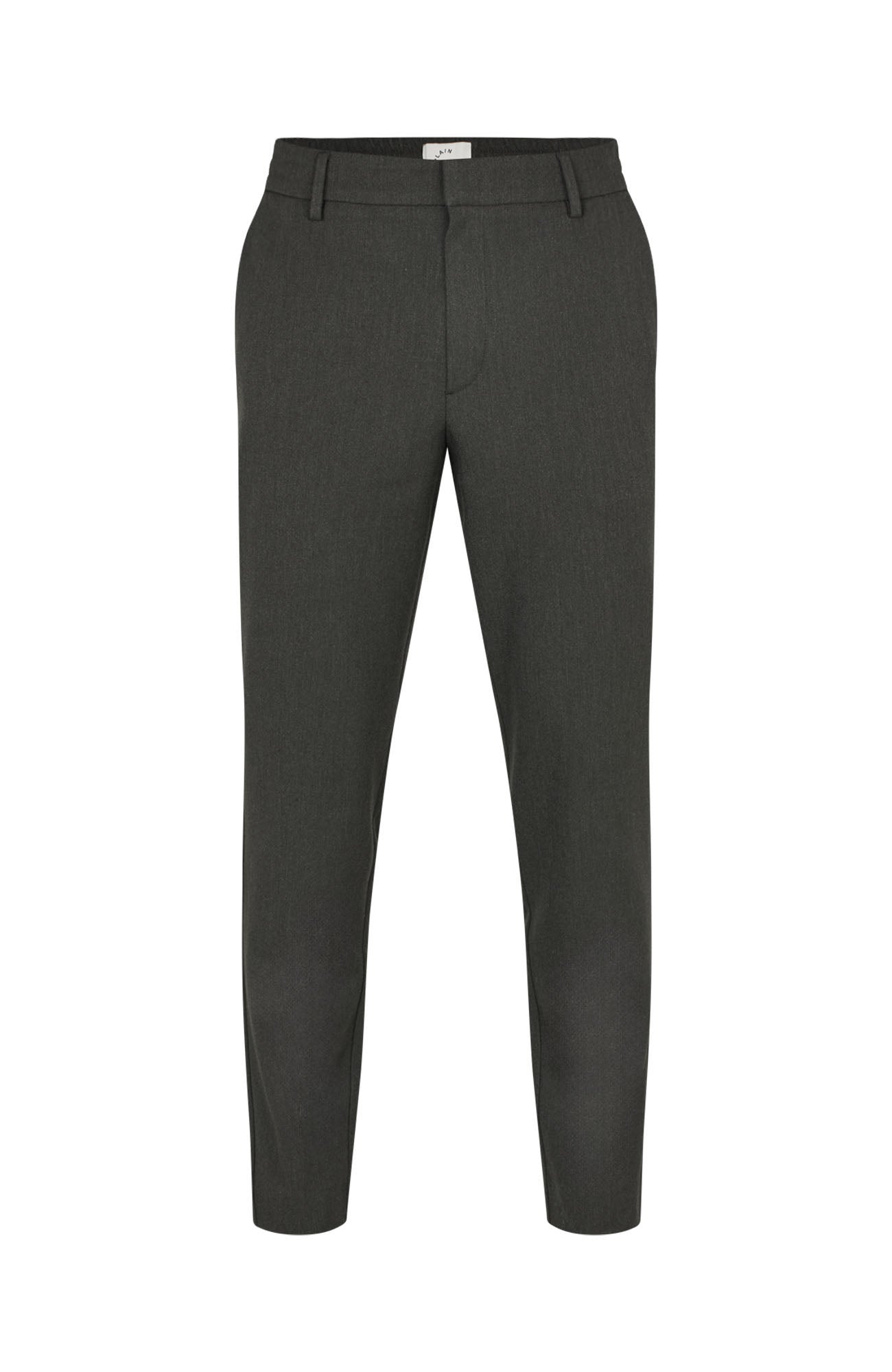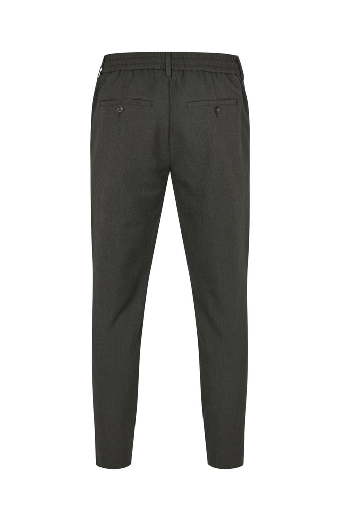Smale bukser med midje i vanlig høyde, laget i mykt melange-stoff med fleksibel elastikk bak for ekstra komfort. Buksen har skrålommer foran, baklommer med dobbel slepelomme og skjult hempe- og glidelåslukking. Perfekt til både hverdag og mer formelle anledninger.