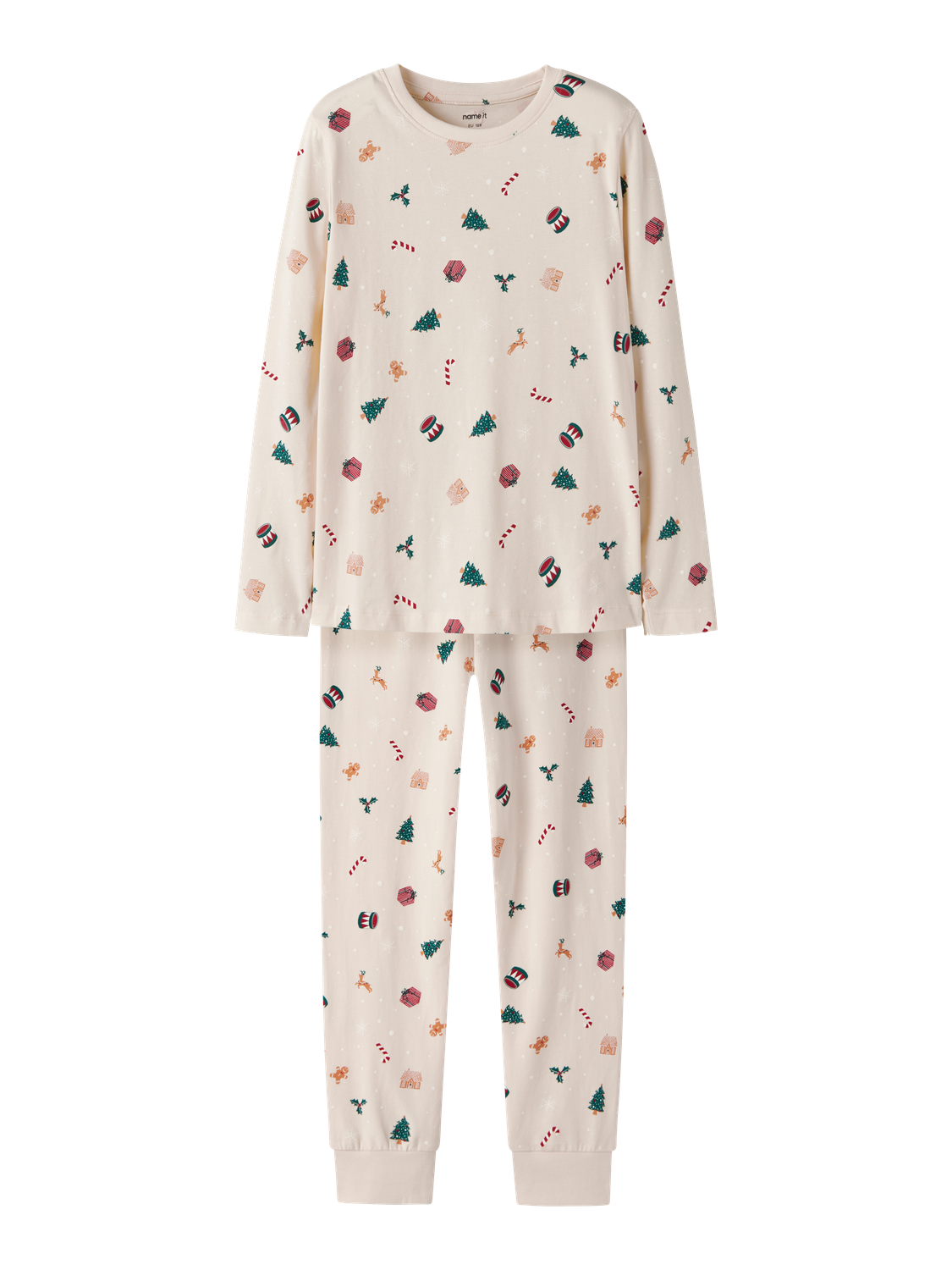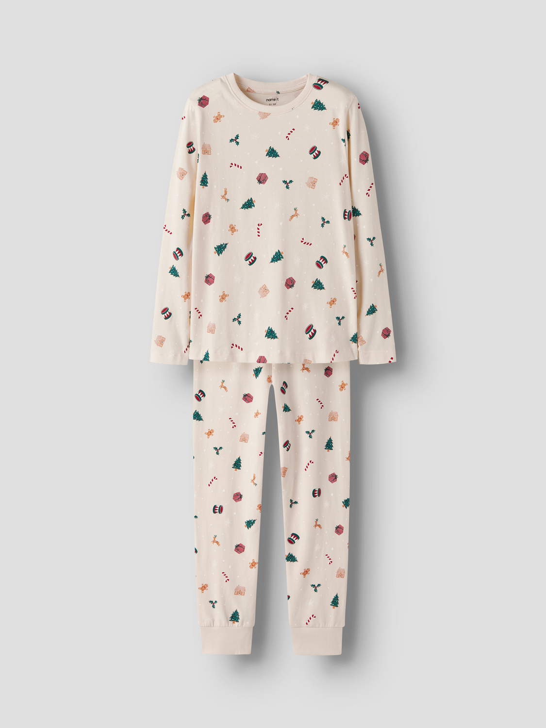 Name It - Nknvismas Ls Nightset - Whitecap Gray Xmas Aop