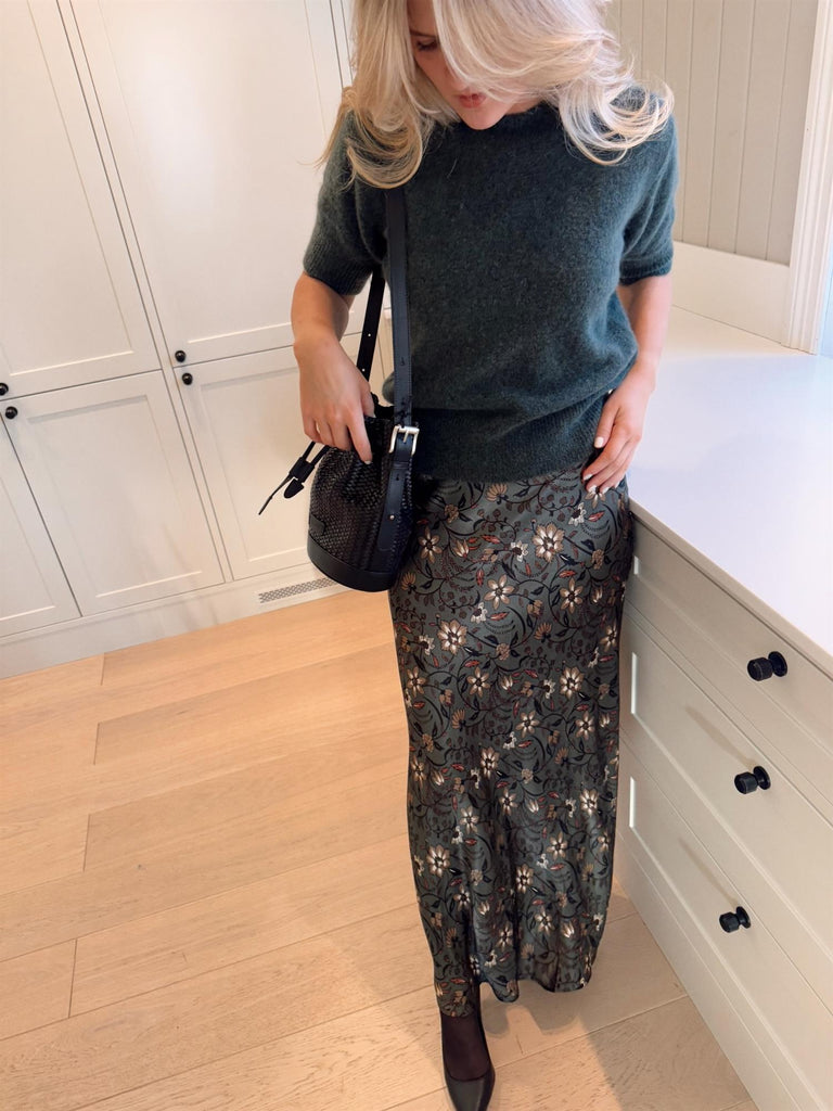 Rah Oslo - Long Bias Cut Skirt - Green Midi Print Aw 2025