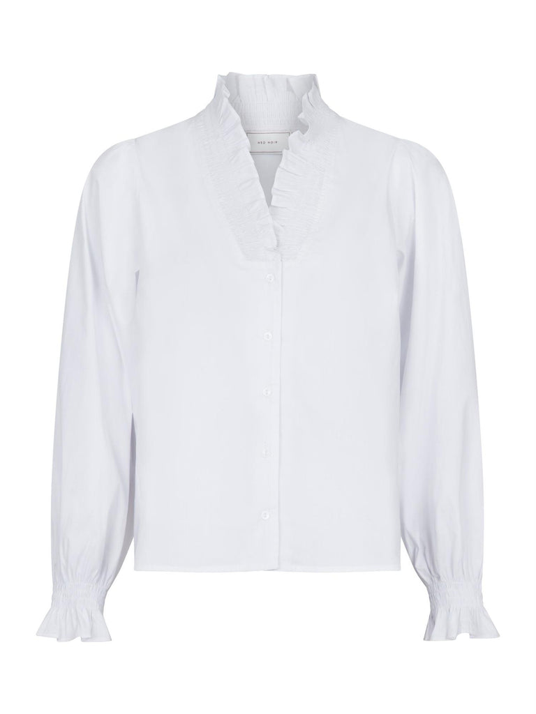 GANNI - Stretch Cotton Shirt w. Frills - Snow White