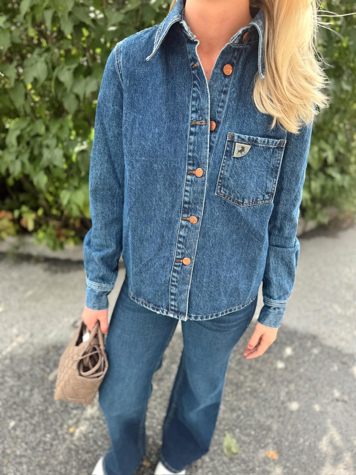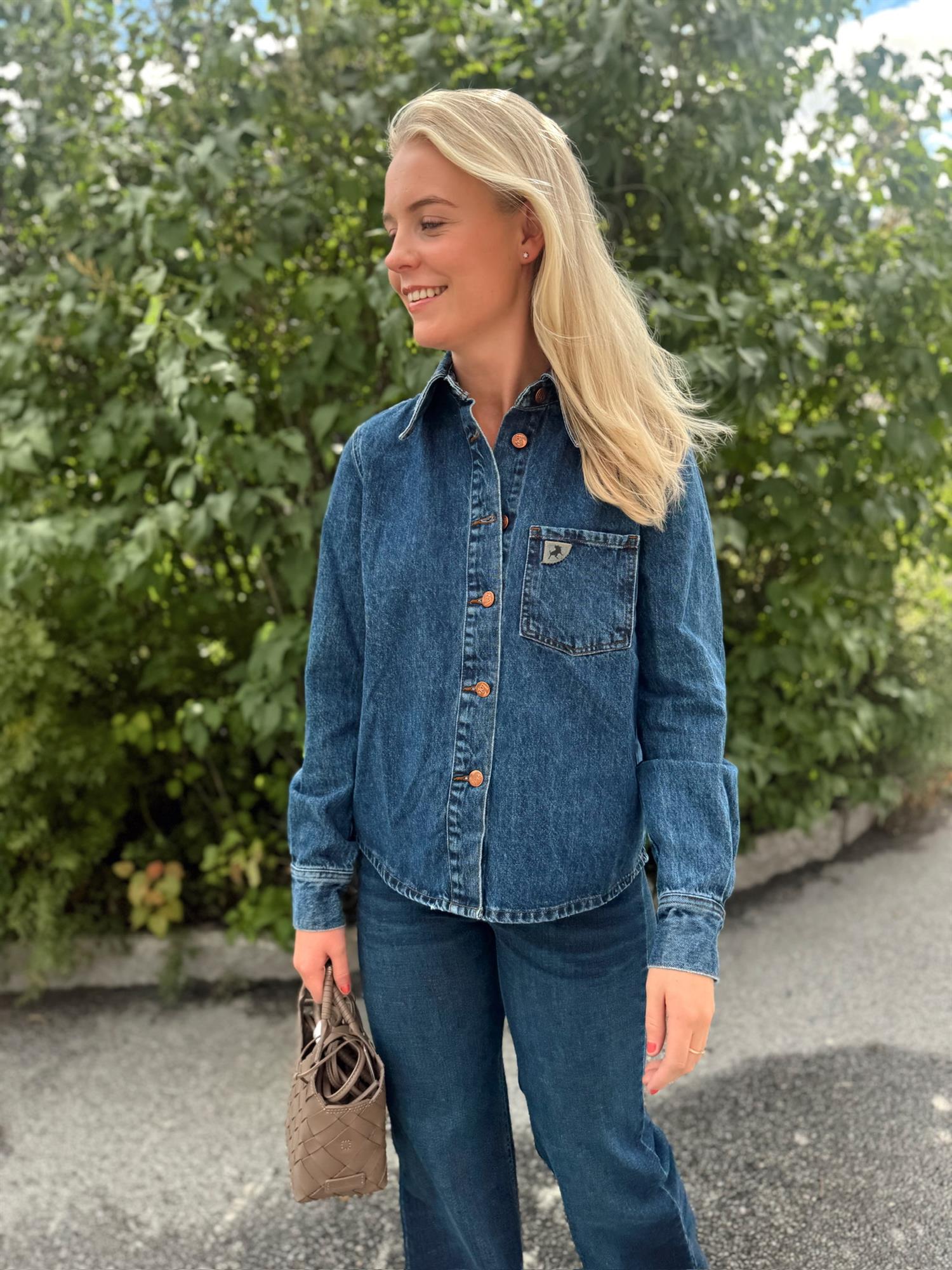 Isa fra Lois er en mørk denimskjorte med klassisk snitt og gjennomførte detaljer. Skjorten har rett passform, klassisk krage, kobberfargede metallknapper og brystlomme med diskret logobadge. Den myke bomullskvaliteten gir et avslappet uttrykk, mens det strukturerte snittet holder formen gjennom hele dagen.