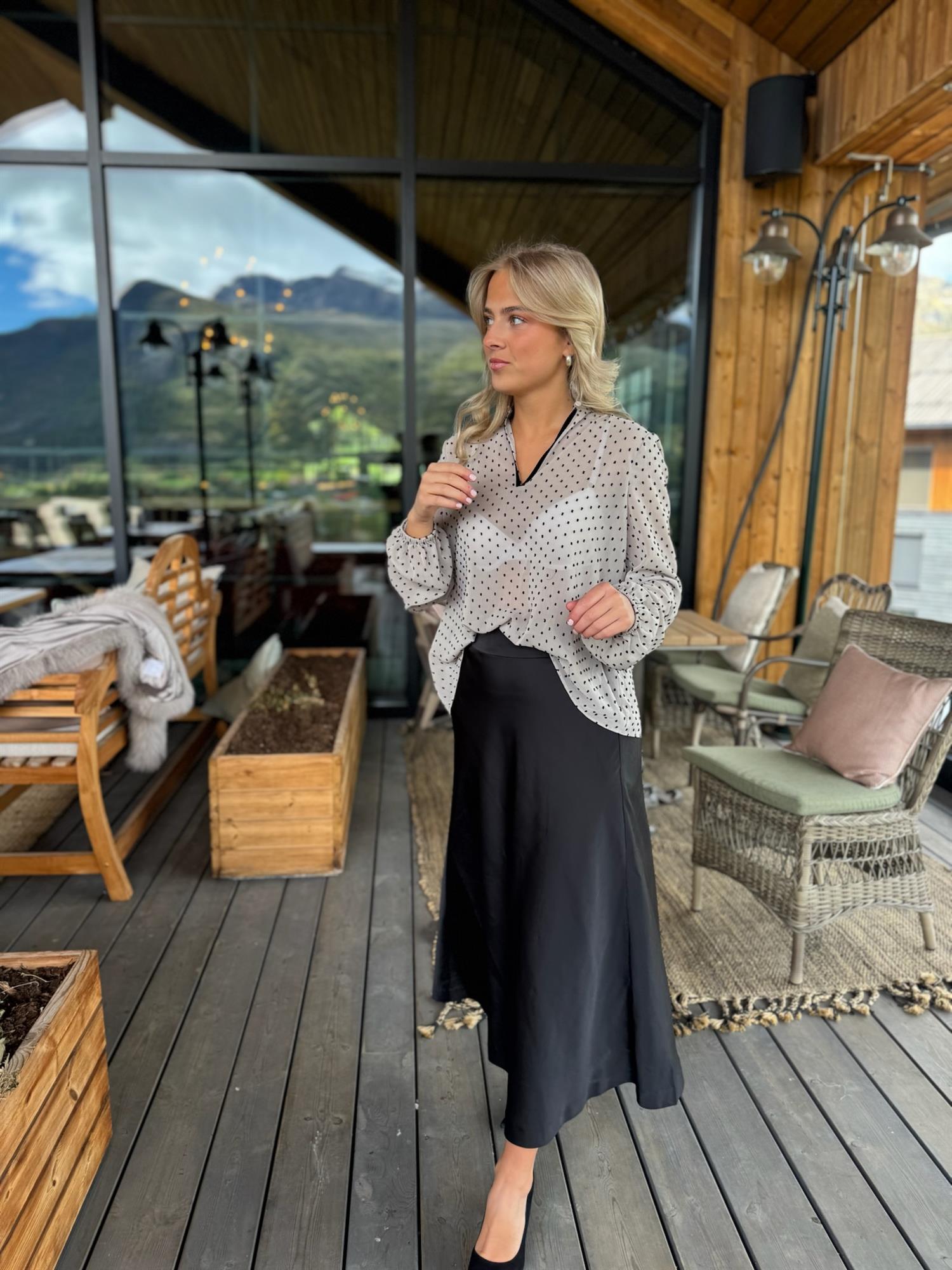 DOTTIEIW BLOUSE er en stilren og klassisk bluse laget av 100% polyester, perfekt for enhver anledning. Den tidløse steinfargen gir et elegant preg som enkelt kan styles med ulike antrekk.