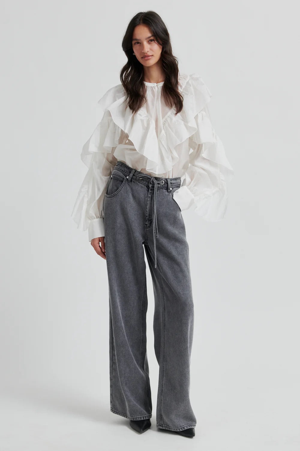 Bluse fra Second Female i et lett og semitransparent materiale som gir et elegant uttrykk. Modellen har nøkkelhullåpning med knappelukking i front, diagonale volangdetaljer foran og på ermene, samt lange ermer med mansjetter og knapp. Den luftige og avslappede passformen gjør den like fin til hverdags som til festligere anledninger.
