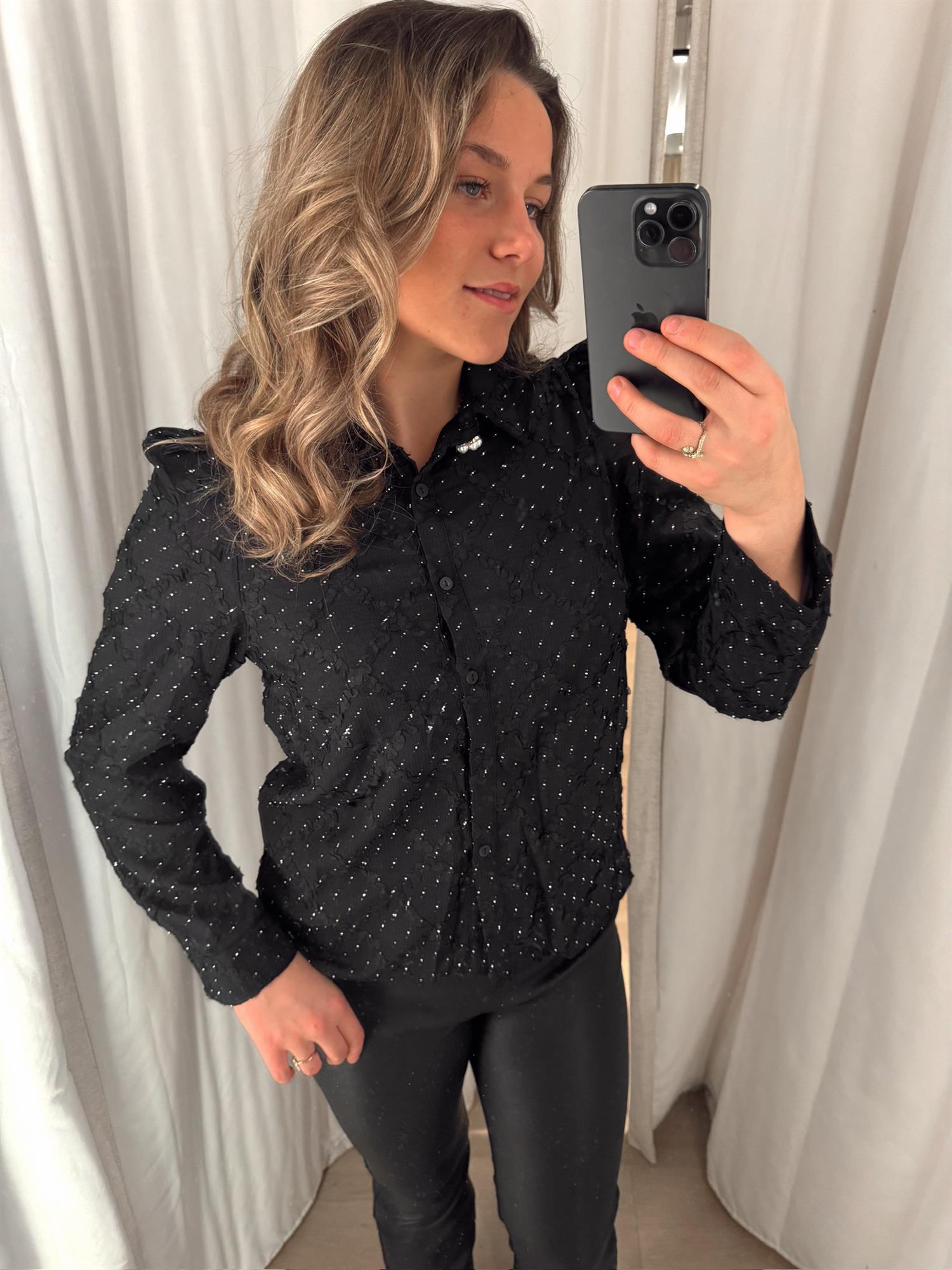 From Paris With Love - Bluse m/knapper og strass - Black