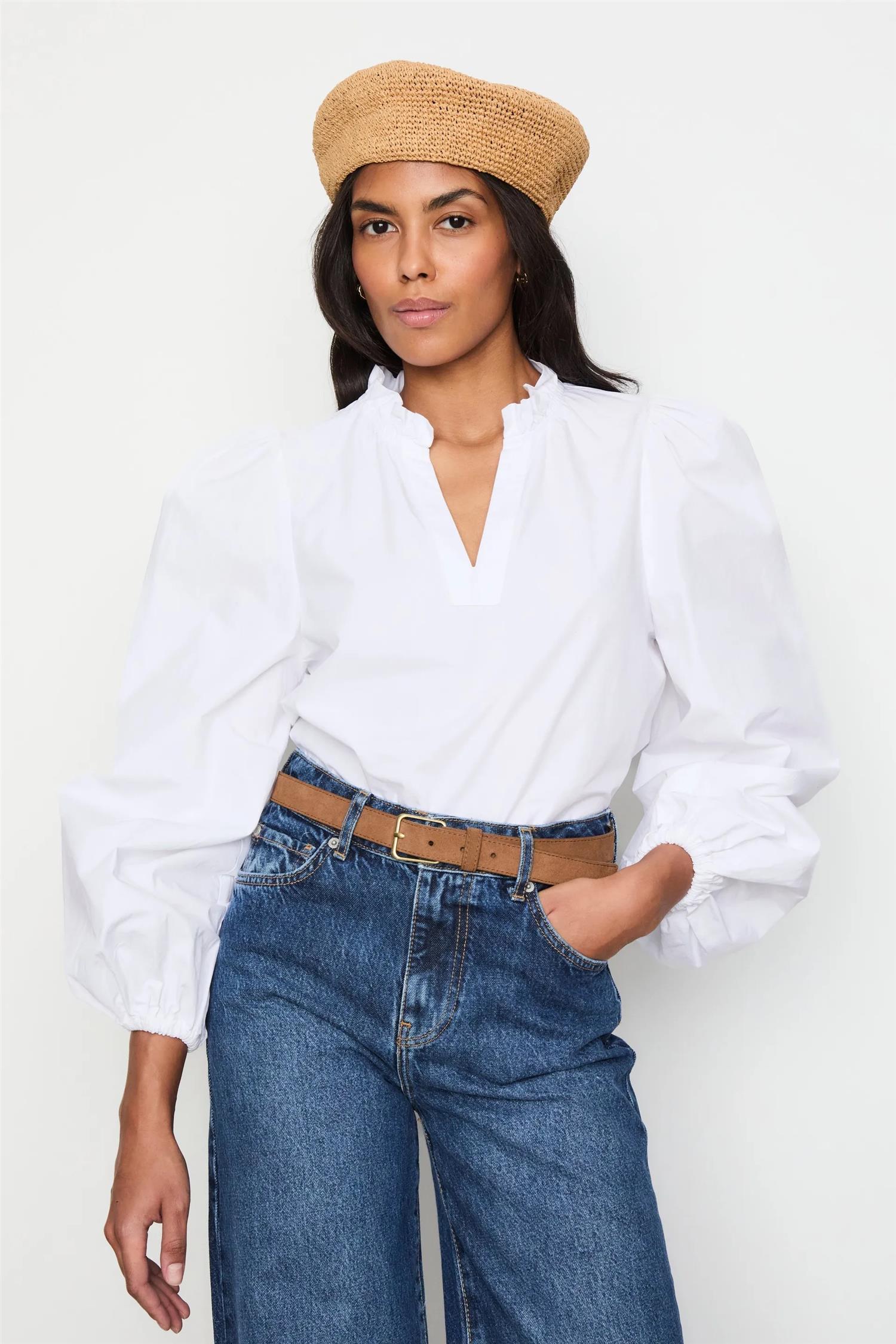 - Studio-modellen er 172 cm høy og bruker størrelse 27/34