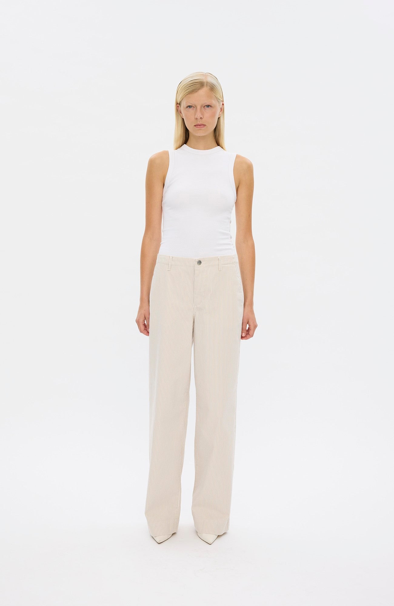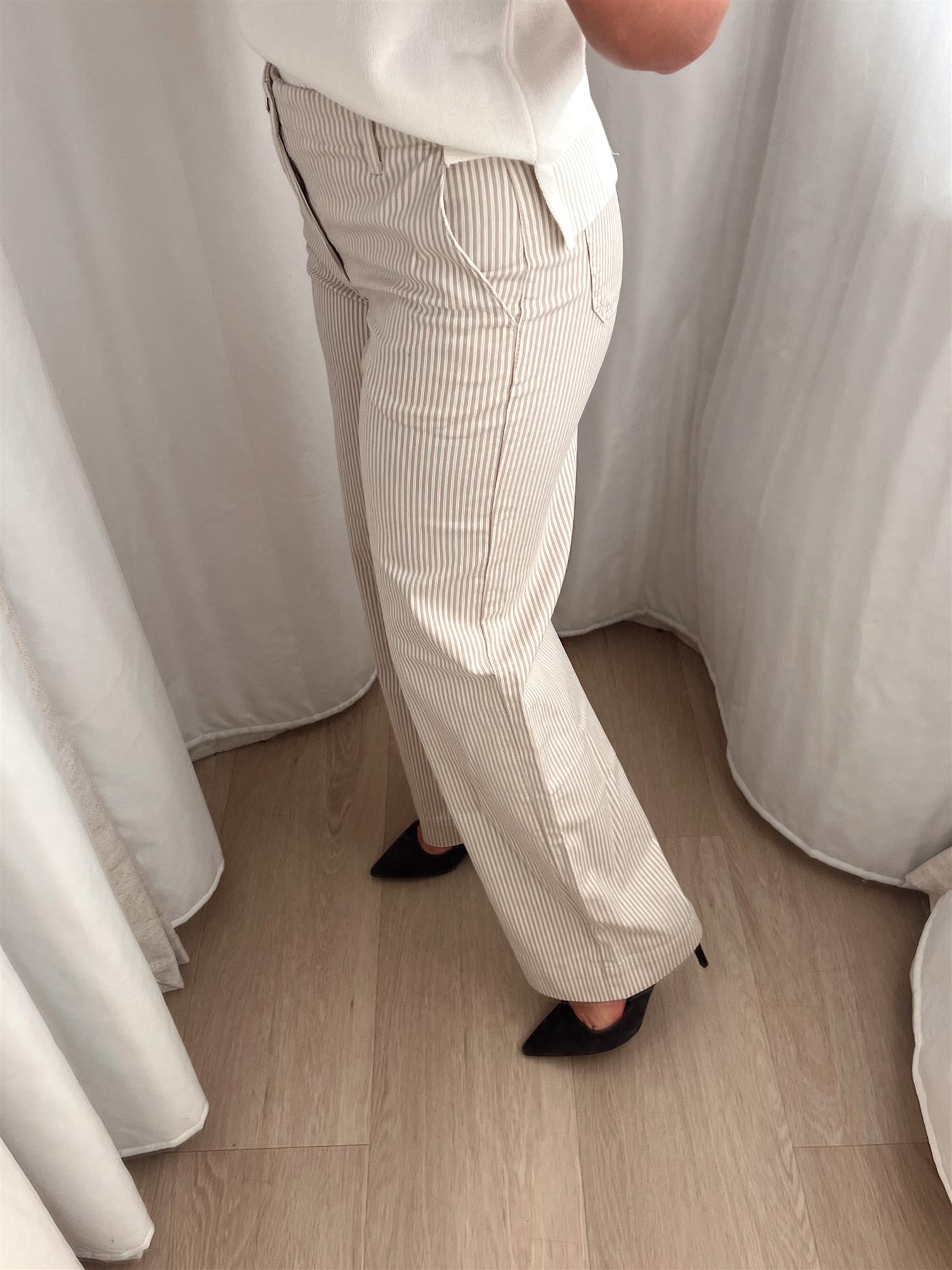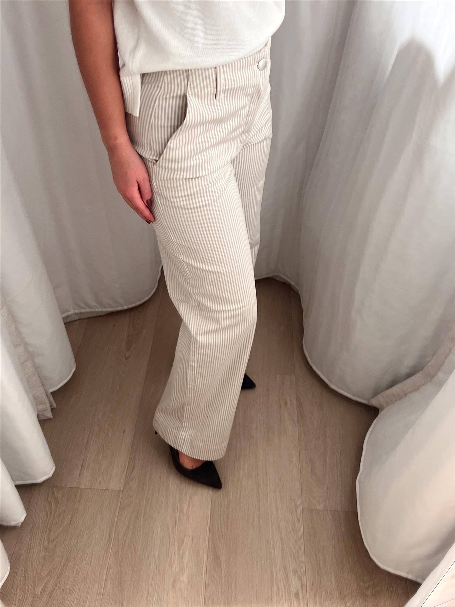 EricaFV 825 LONG bukser i Oat Milk Stripe er det perfekte valget for en avslappet og stilfull look. Laget av myk og komfortabel bomull med en liten andel elastan for ekstra bevegelighet, disse buksene er ideelle for hverdagsbruk.
