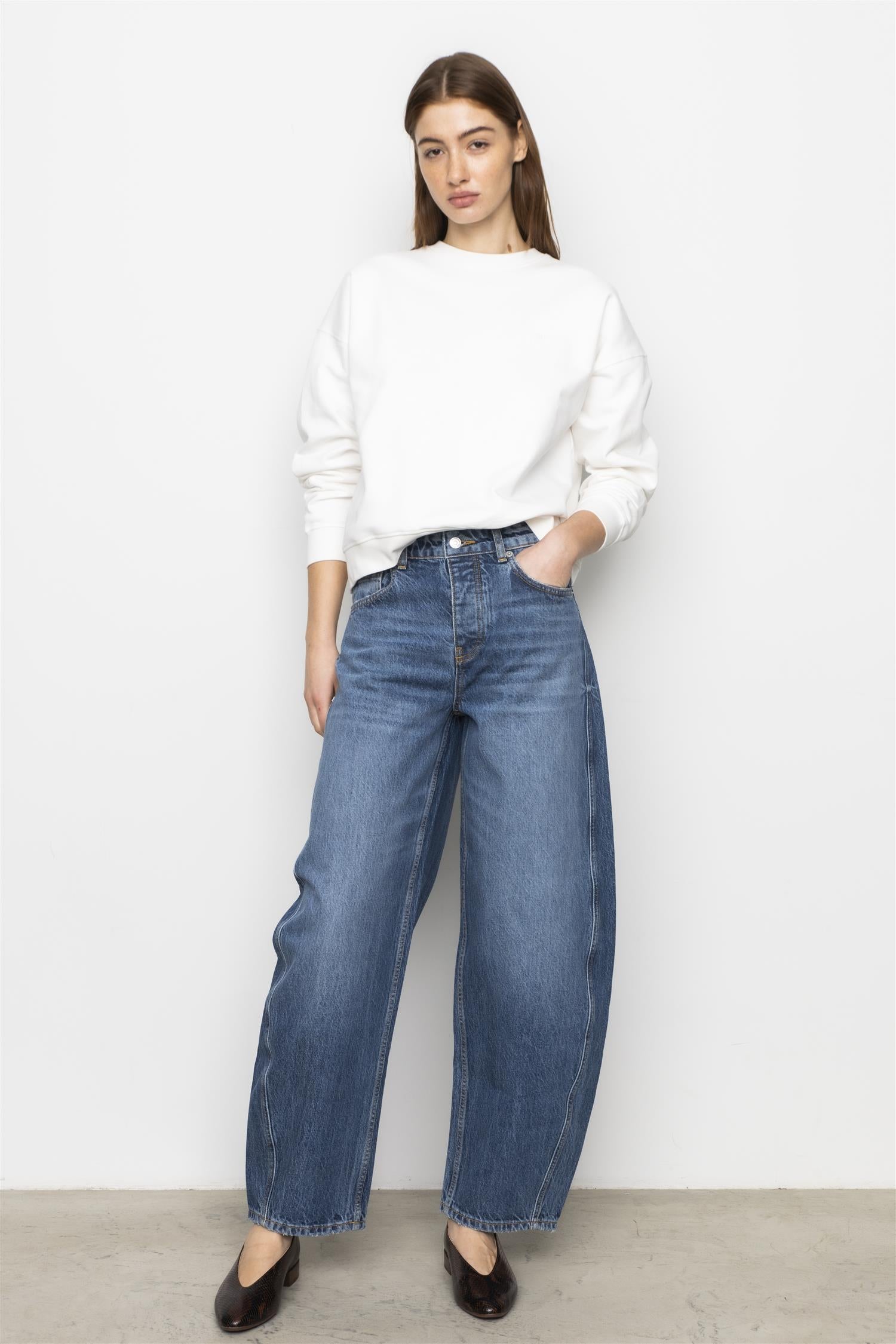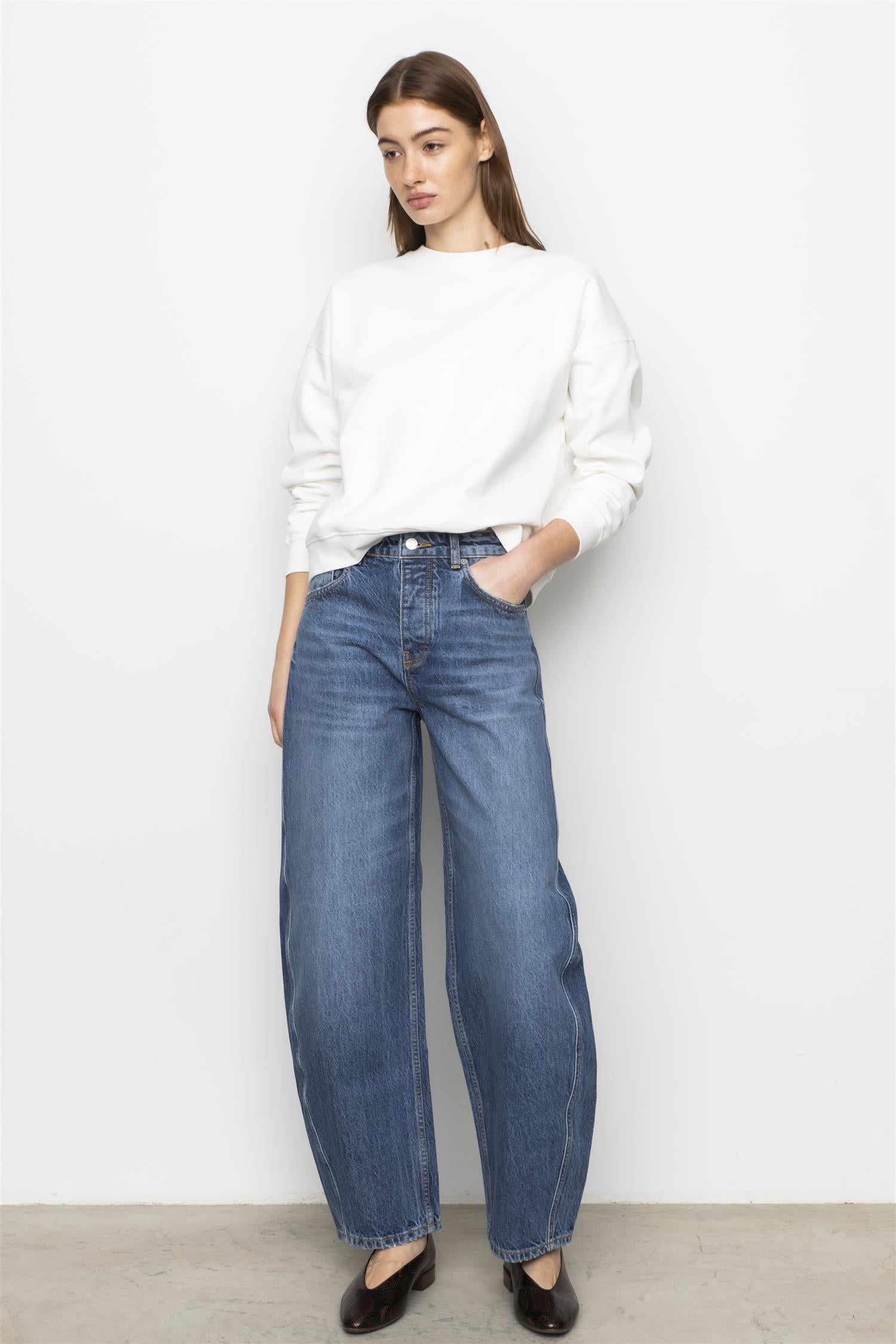 Libby er et nytt tilskudd til vår denimkolleksjon. Modellen har en avslappet barrel-leg-silhuett som sitter komfortabelt over hoftene. Buksen er designet med klassisk femlommers-konstruksjon og slitesterk YKK-glidelås i gylfen, og kombinerer struktur med en behagelig passform. Perfekt å style sammen med James Denim Jacket for et gjennomført denim-sett.