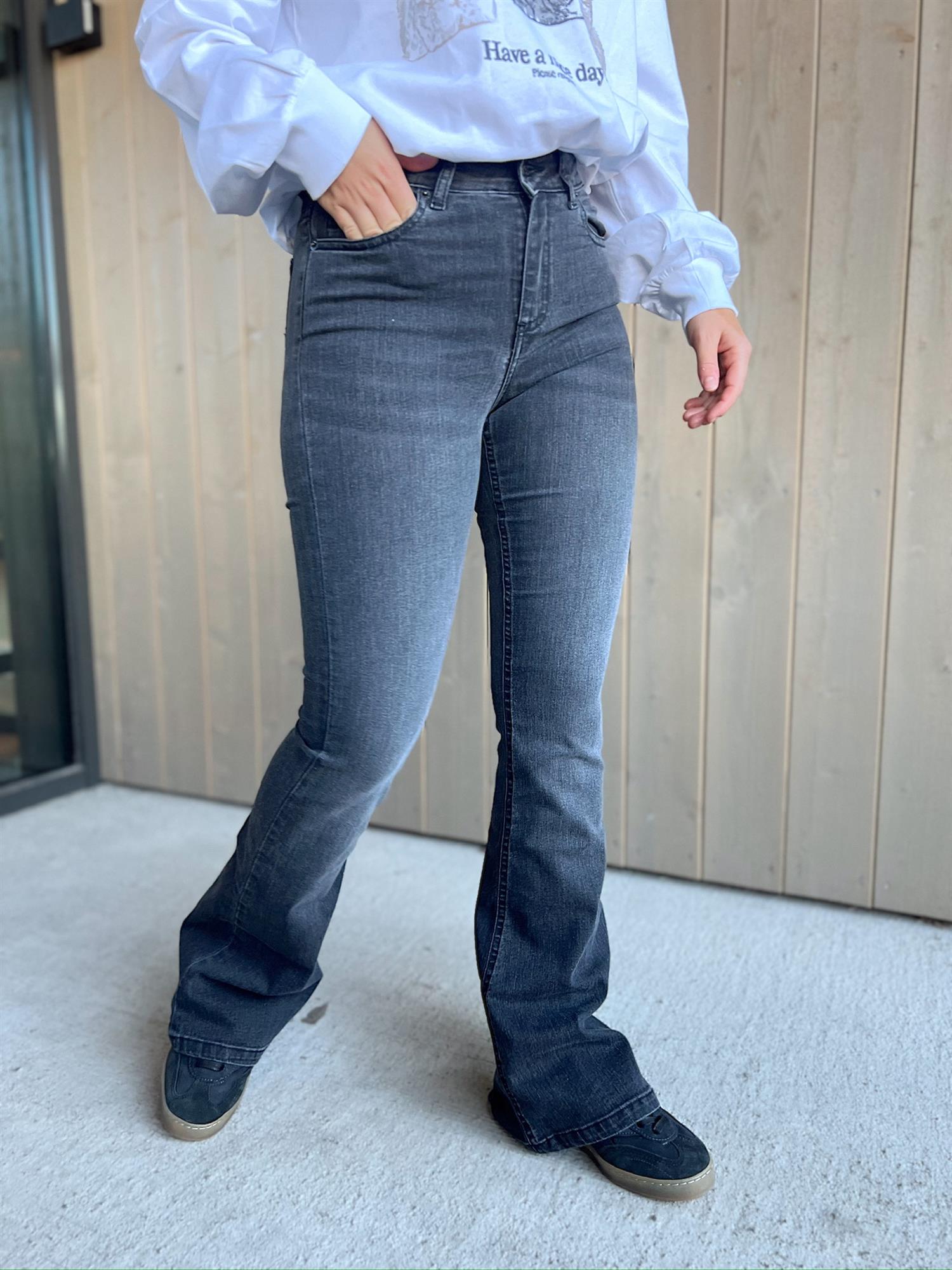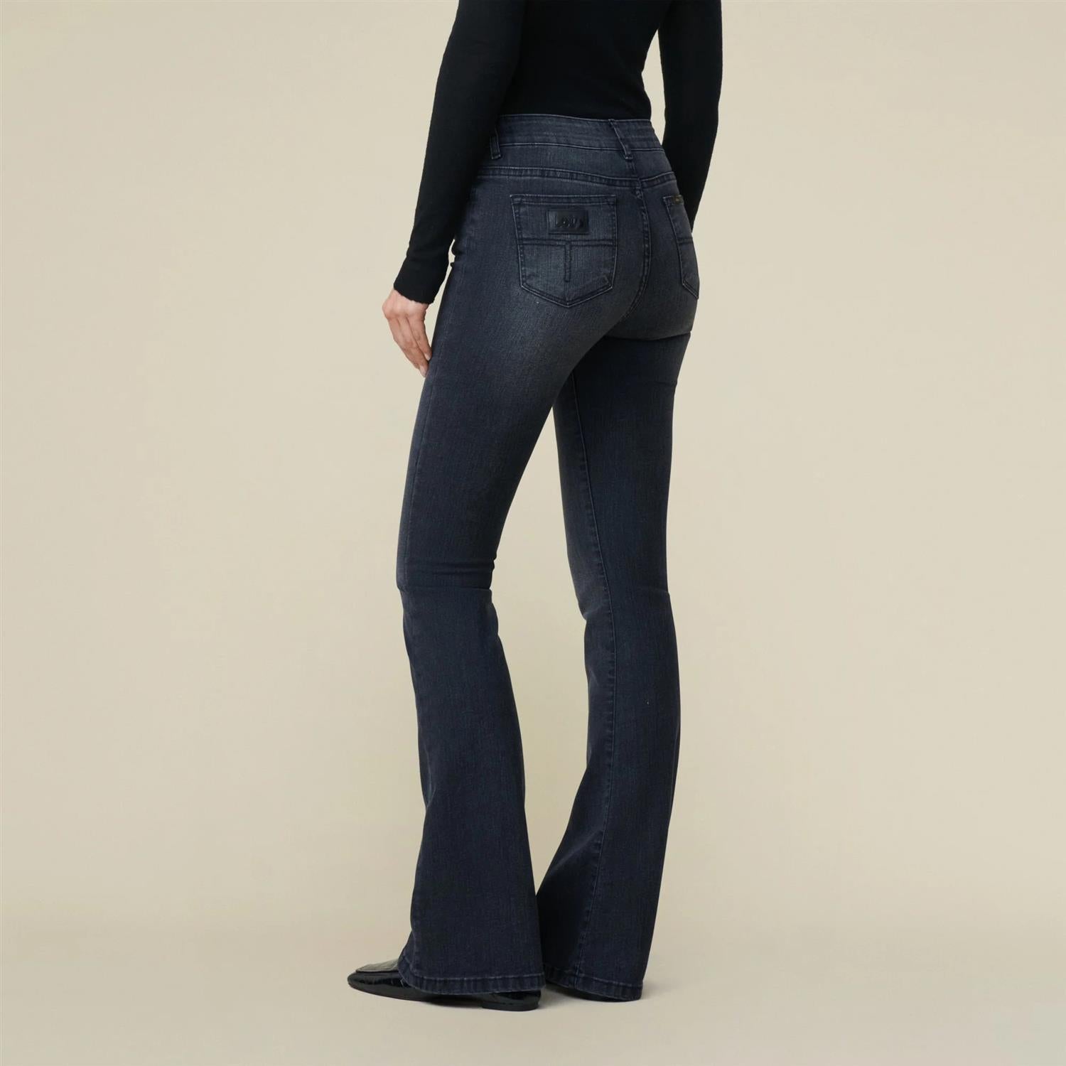 Raval 16 fra Lois er en tidløs klassiker og en av merkets mest populære modeller. Den har høyt liv og sleng i bena – en flatterende passform som sitter tett over hofter og lår før den vider seg ut. Buksen er laget i et mykt og stretchy stoff som gir både komfort og bevegelsesfrihet.