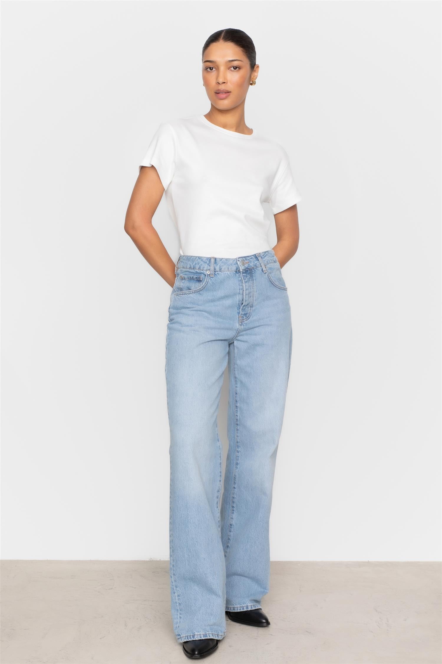En klassisk jeans fra Camilla Pihl med høy midje og rett ben. Designet har en tidløs silhuett som gir et flatterende og anvendelig uttrykk. Et garderobefavoritt som enkelt kan styles både avslappet og mer elegant.