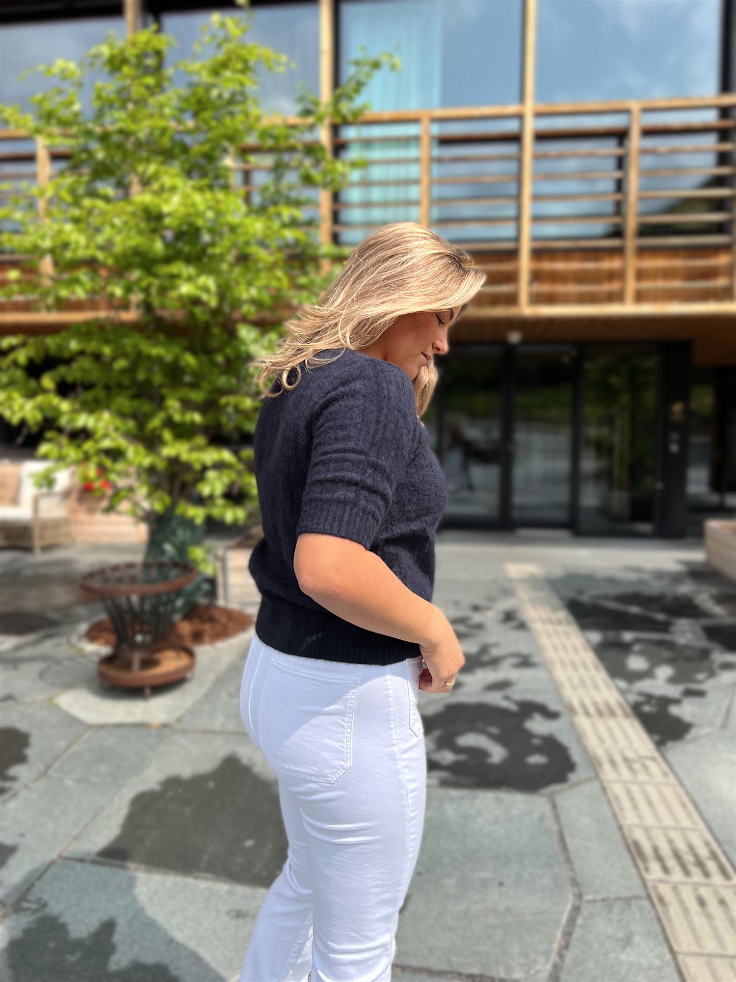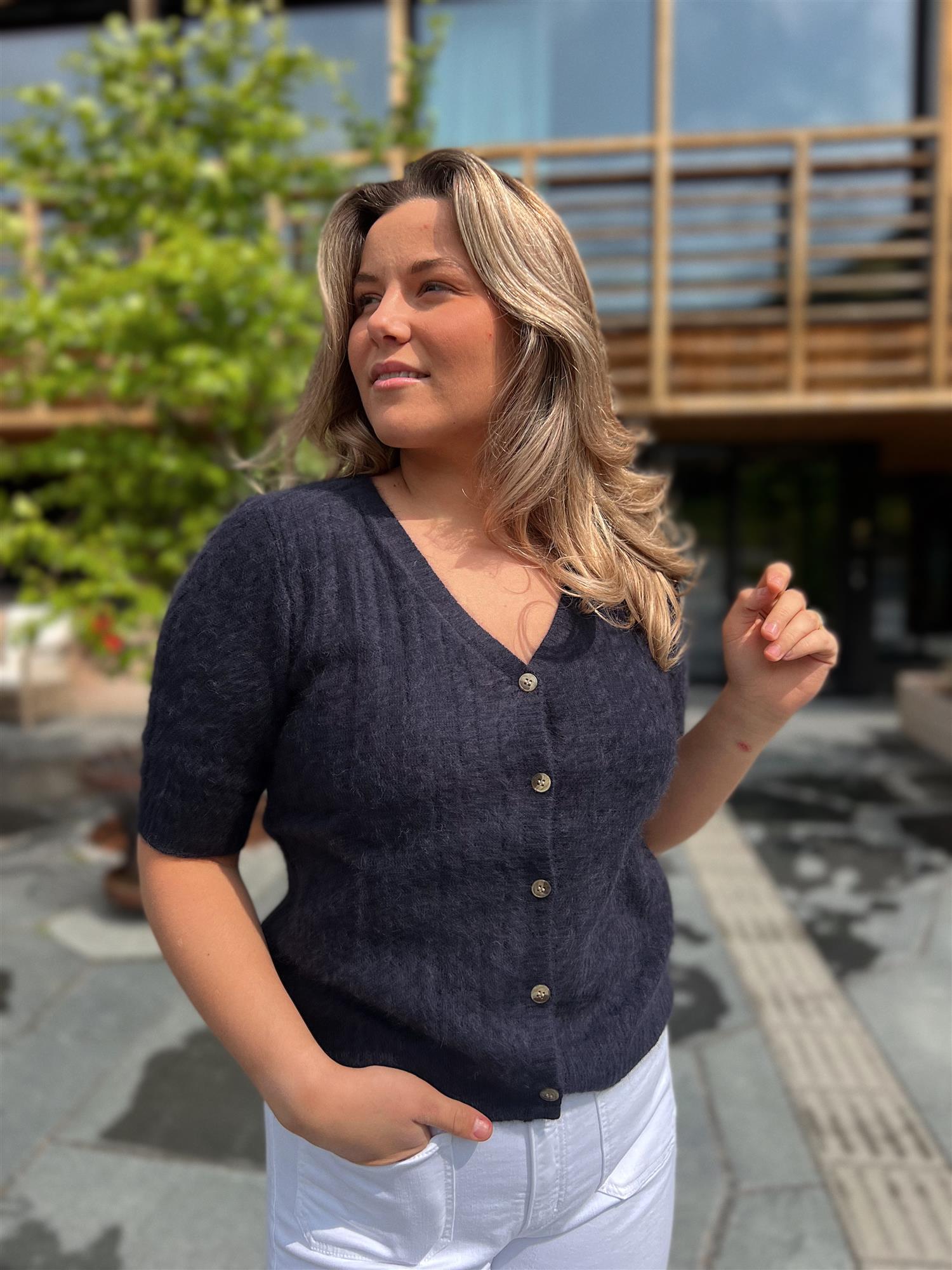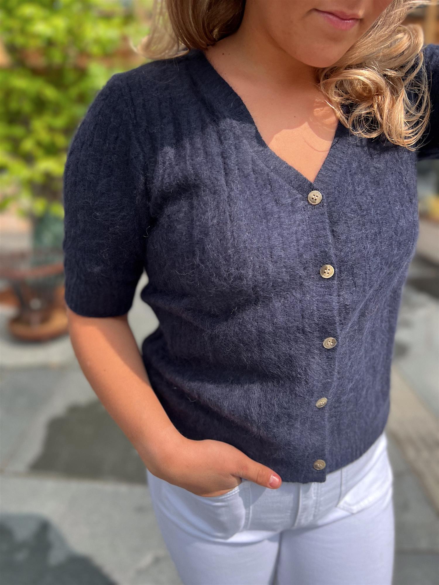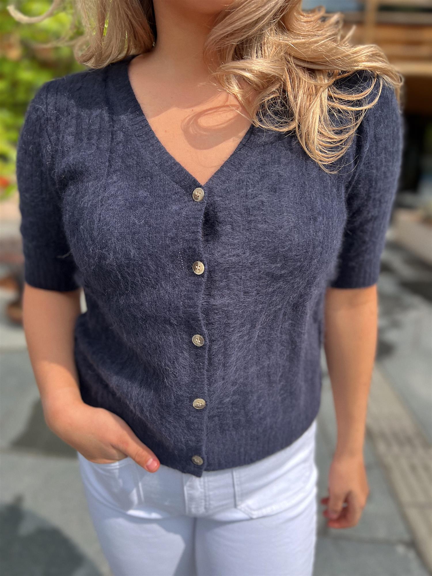 Alicante er en eksklusiv og ultramyk kortermet cardigan i 100 % vaskebjørn-ull. Den har en feminin v-hals og fine ribbestrikkede detaljer langs hals, ermer og kant. Perfekt alene eller som et lag-på-lag-plagg for en tidløs og elegant stil.
