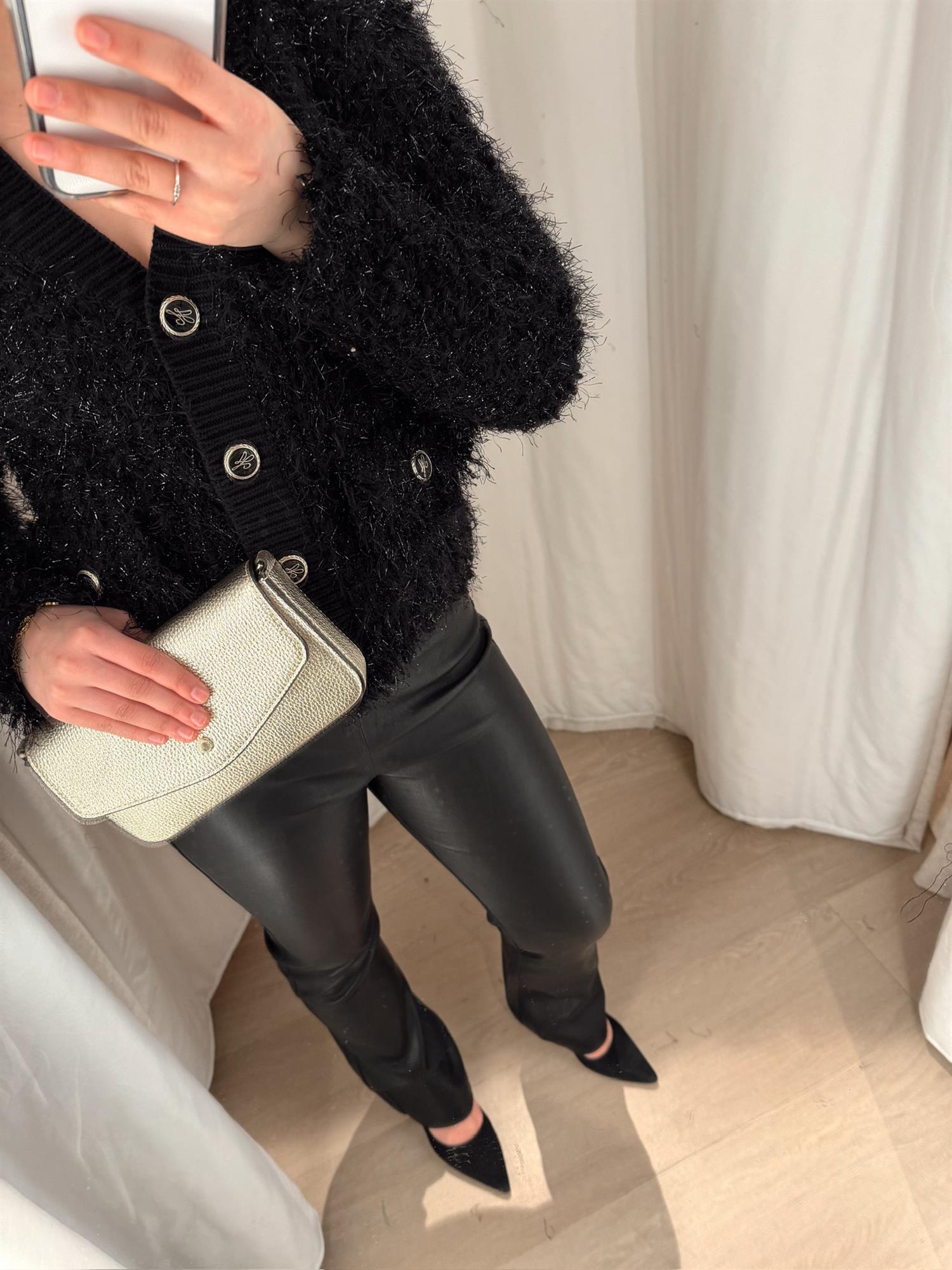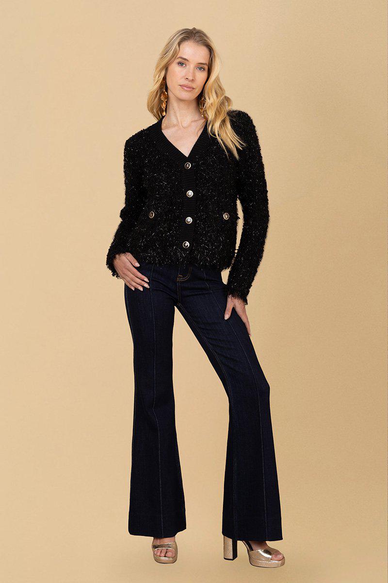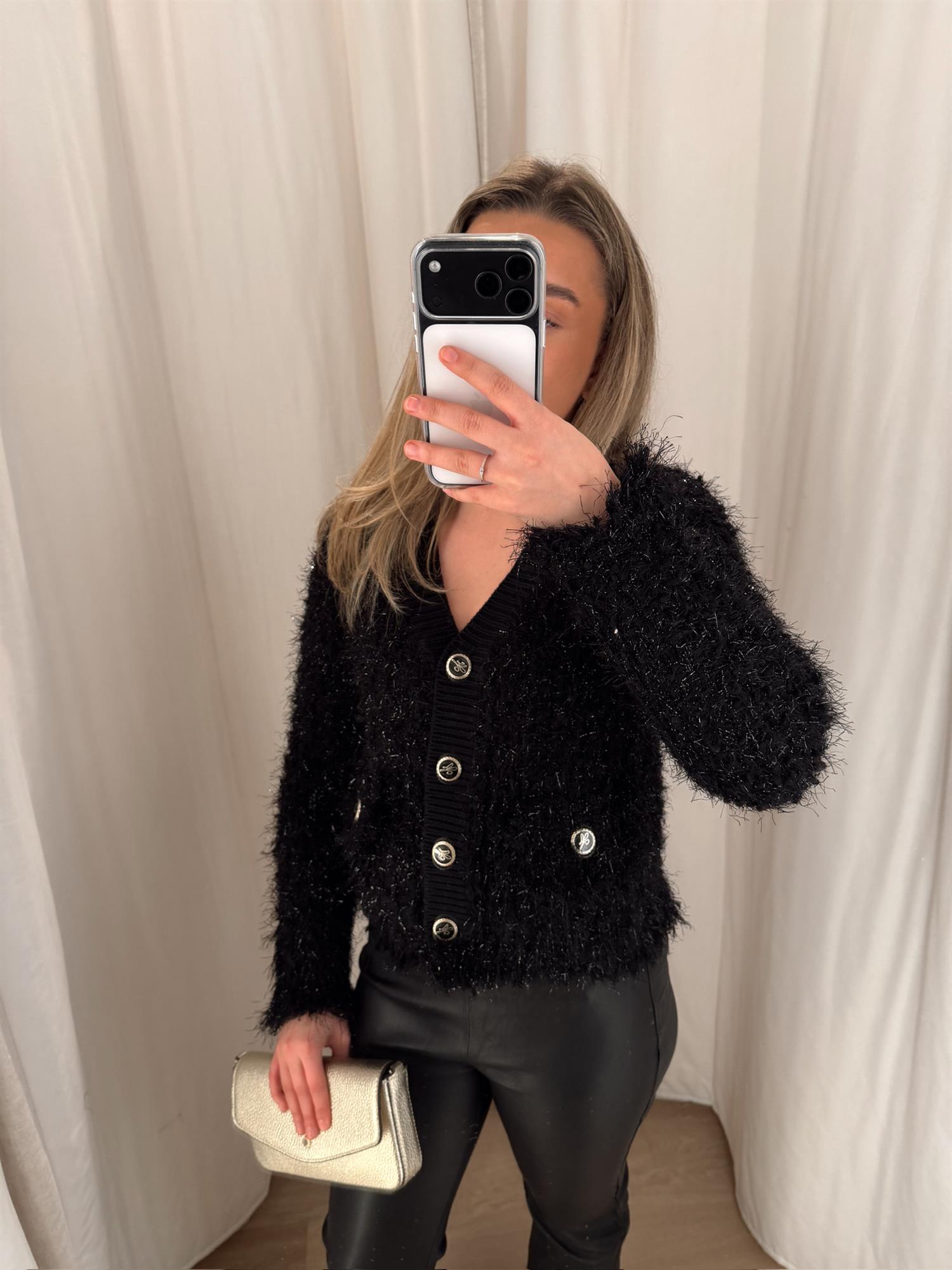 Legg til et stilrent element i garderoben din med Madalyns melange boucle cardigan. Denne cardiganen har en enkel passform med knapper foran og lange ermer, perfekt for å skape en avslappet, men elegant look.