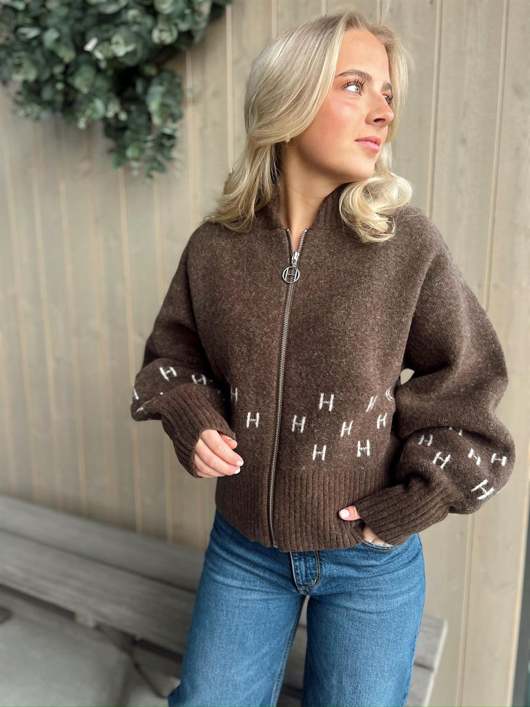 Rah Oslo - Short sleeve cardigan with buttons - Black Ivory Striped