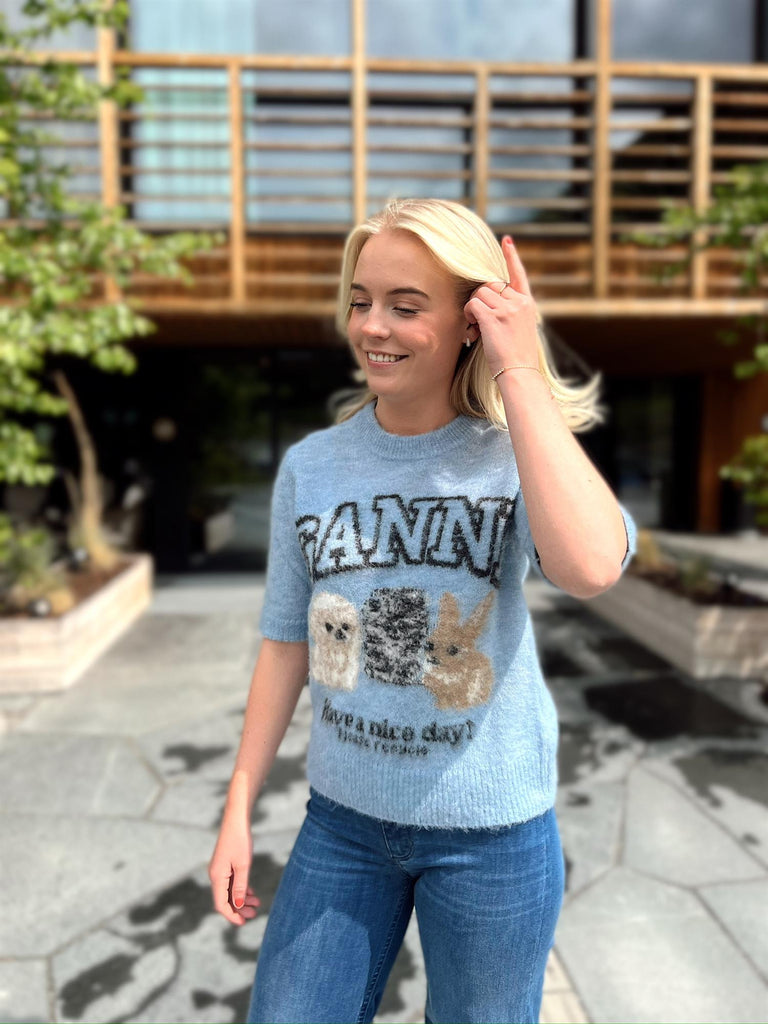 GANNI - Cotton Wool Stripe Sweater - Sky Captain