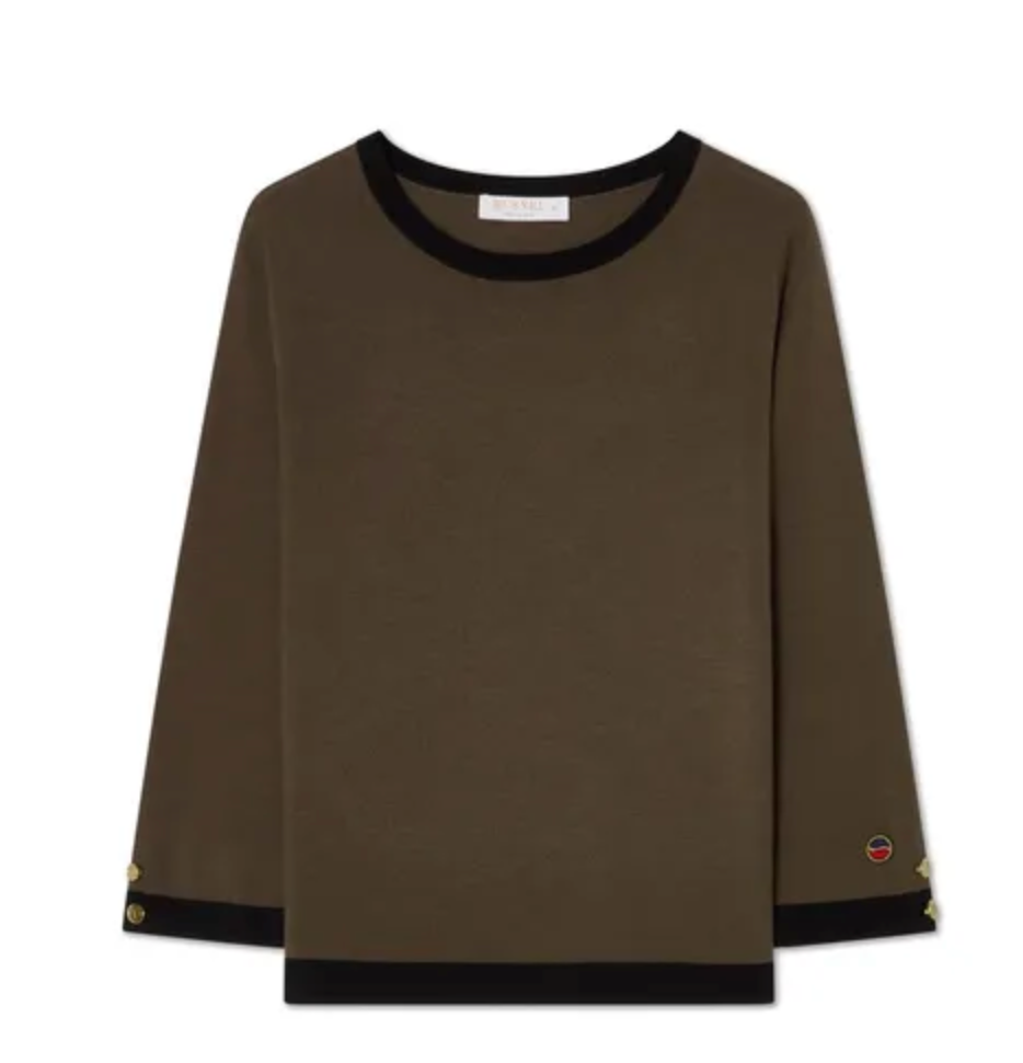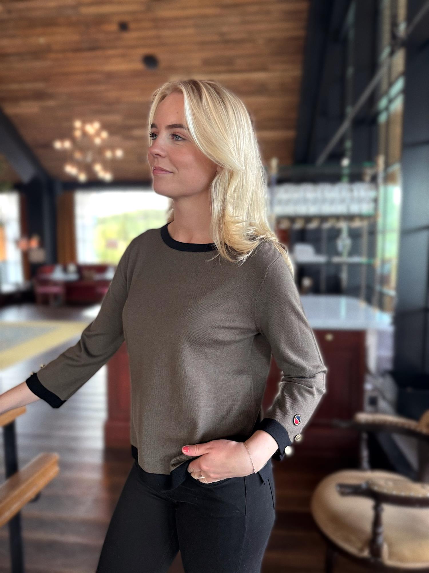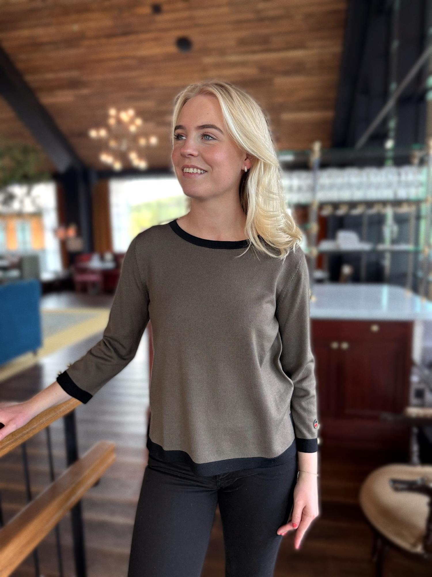 Busnel - HELEN Contrast Top - Moss Melange / Black
