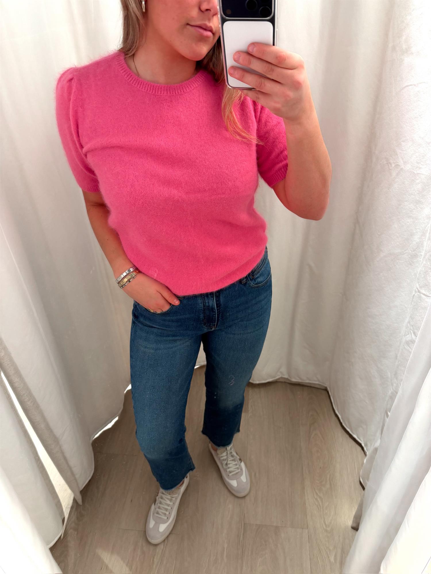 En klassisker du kan bruke til enhver anledning. Den er rett i fasongen med rund hals og korte armer med puff-detaljer.