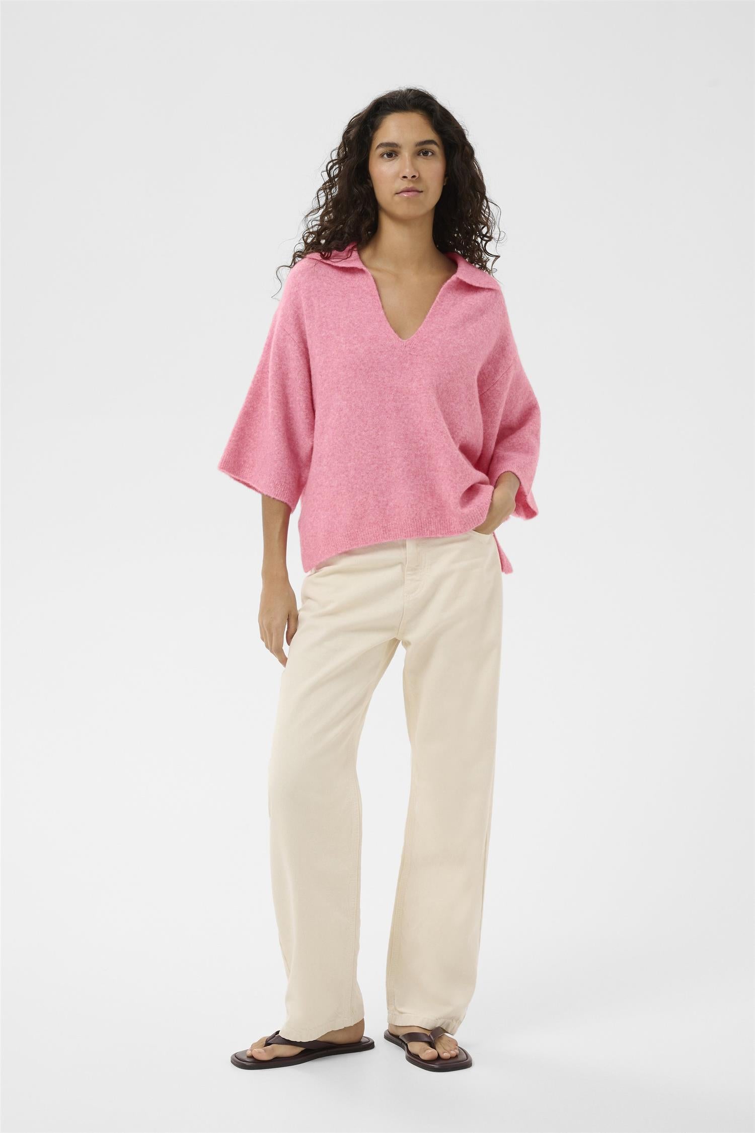GUNIIW POLO i fargen PINK CARNATION MELANGE er en stilfull og komfortabel strikkegenser perfekt for hverdagsbruk. Den myke blandingen av materialer gir både varme og fleksibilitet, noe som gjør den til et ideelt valg for kjøligere dager.
