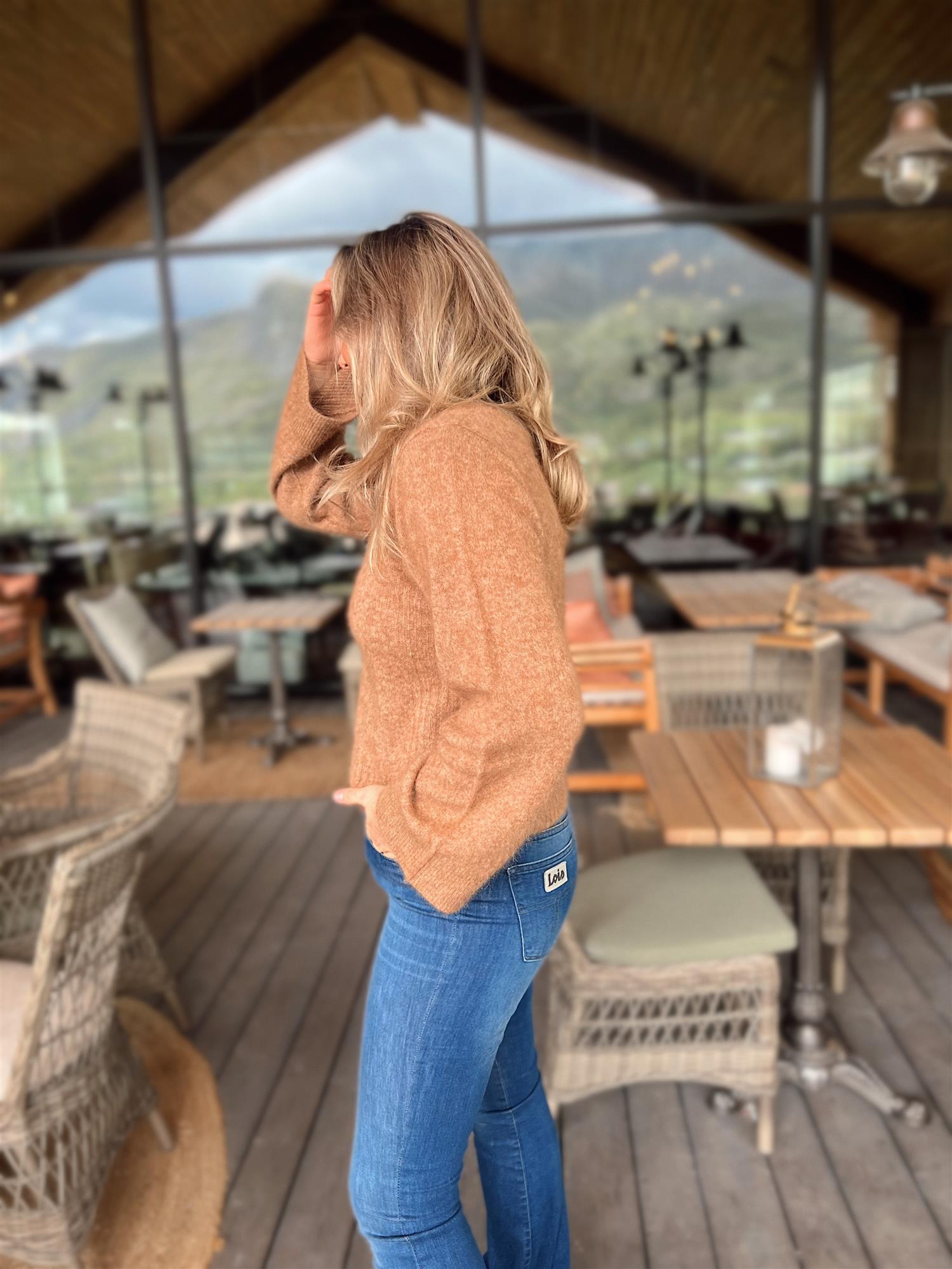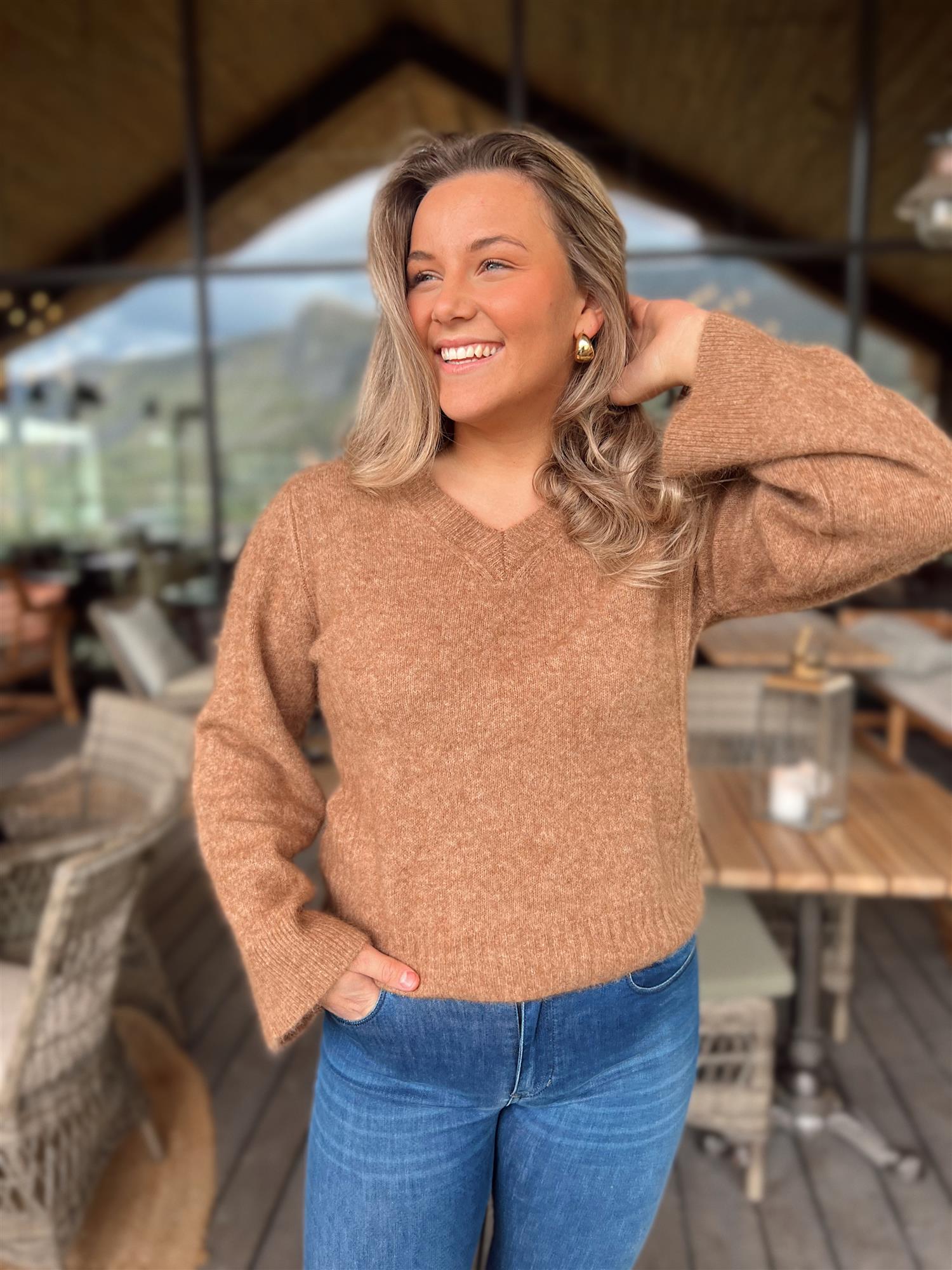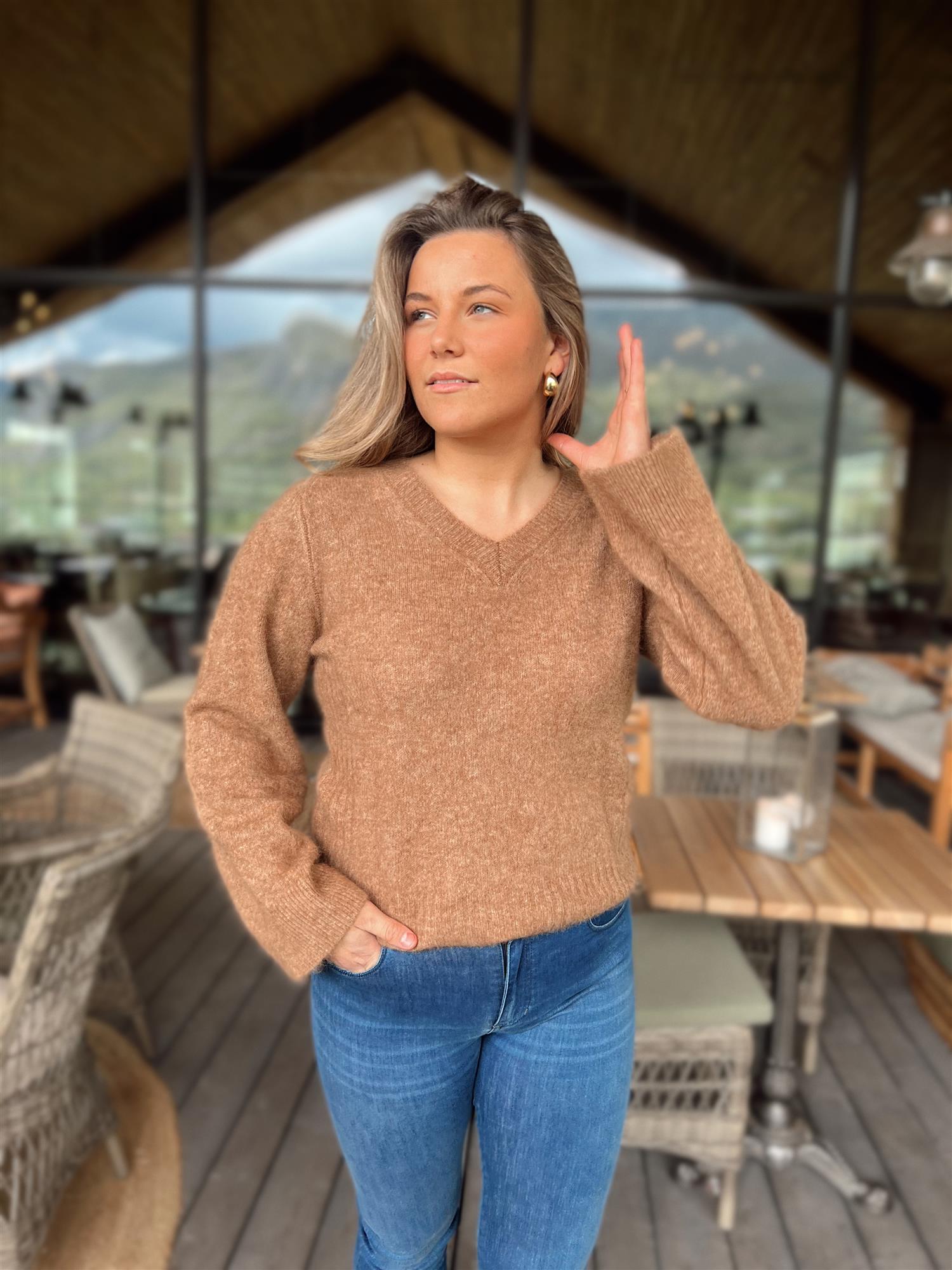 Rioa er en elegant og komfortabel strikkegenser laget av 100% raccoon ull, kjent for sin myke og luksuriøse kvalitet. Genseren har en klassisk V-hals, lange ermer og en normal passform som gir en flatterende og tidløs silhuett. Den har fine ribbedetaljer ved halsen, ermene og kanten, samt et diskret ribbestrikket panel på sidene for ekstra struktur og stil. Perfekt for både hverdagsbruk og mer sofistikerte antrekk.