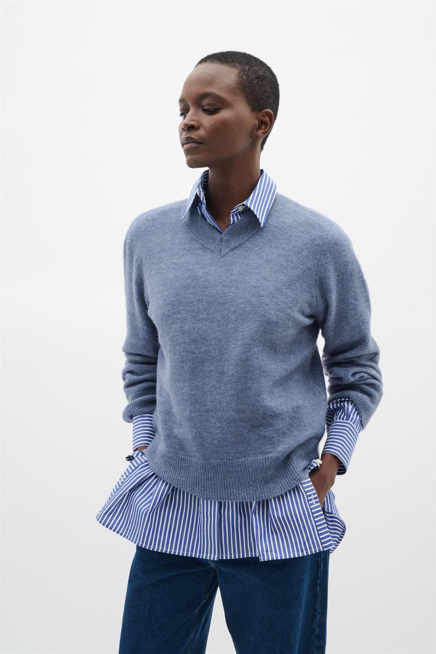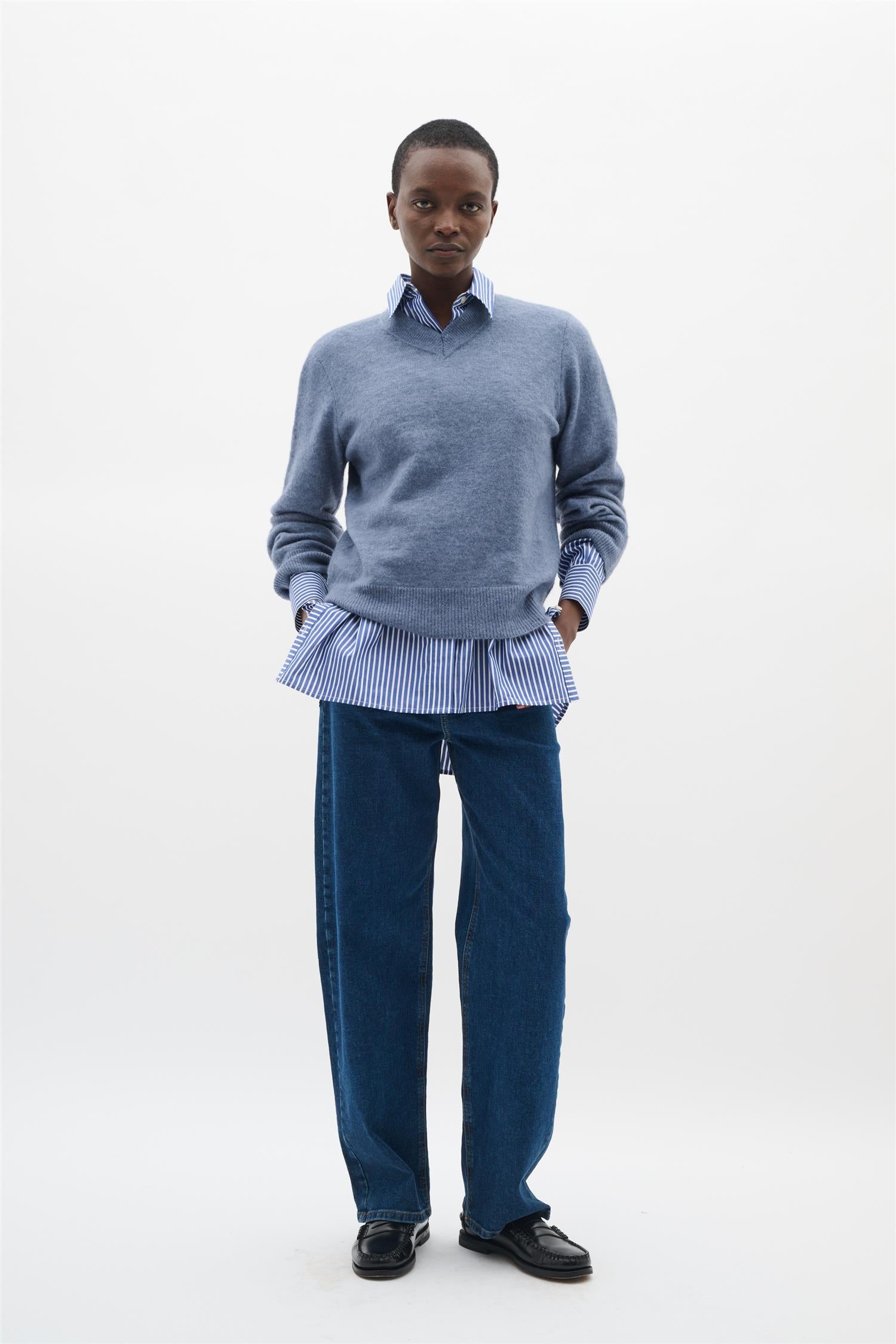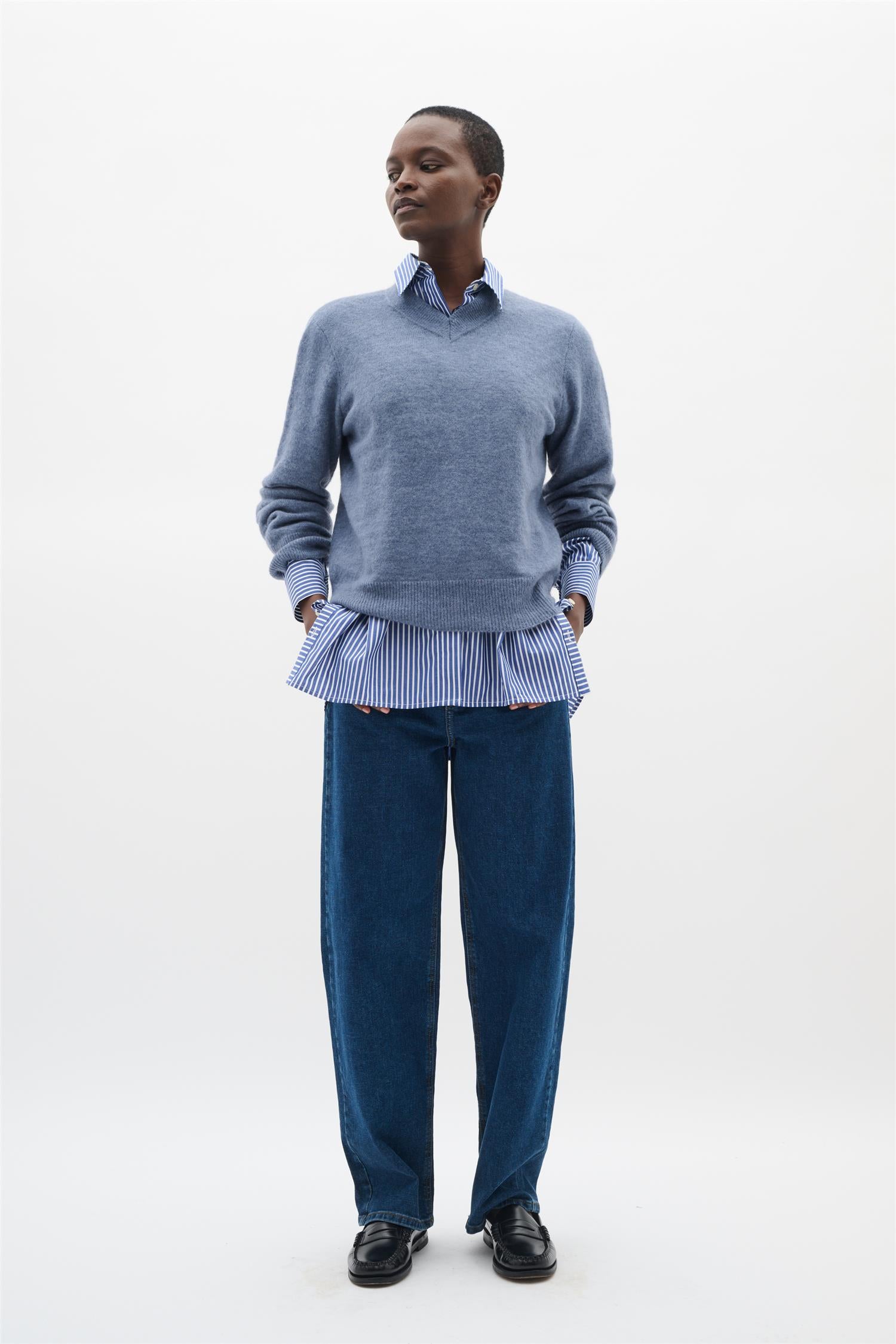 GuniIW V-Neck er en stilren og komfortabel strikkegenser i fargen Wild Wind. Denne genseren kombinerer moderne design med myke og varme materialer, perfekt for kjøligere dager.