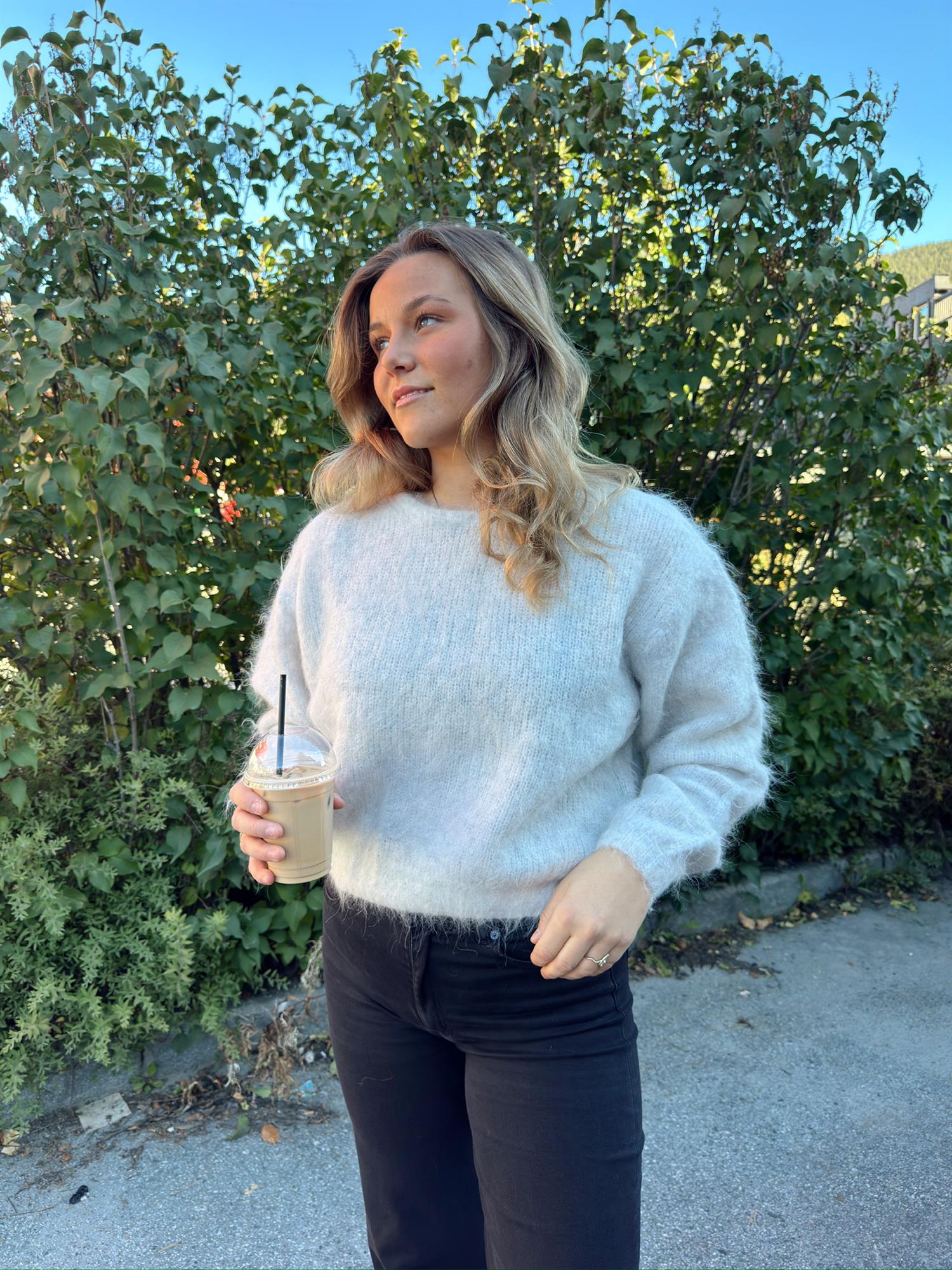 En myk og luksuriøs strikkegenser i en delikat rosatone, laget i en eksklusiv alpakka-blanding som føles fantastisk mot huden. Genseren har rund hals, lange ermer og en avslappet passform som gjør den både komfortabel og enkel å style i hverdagen.