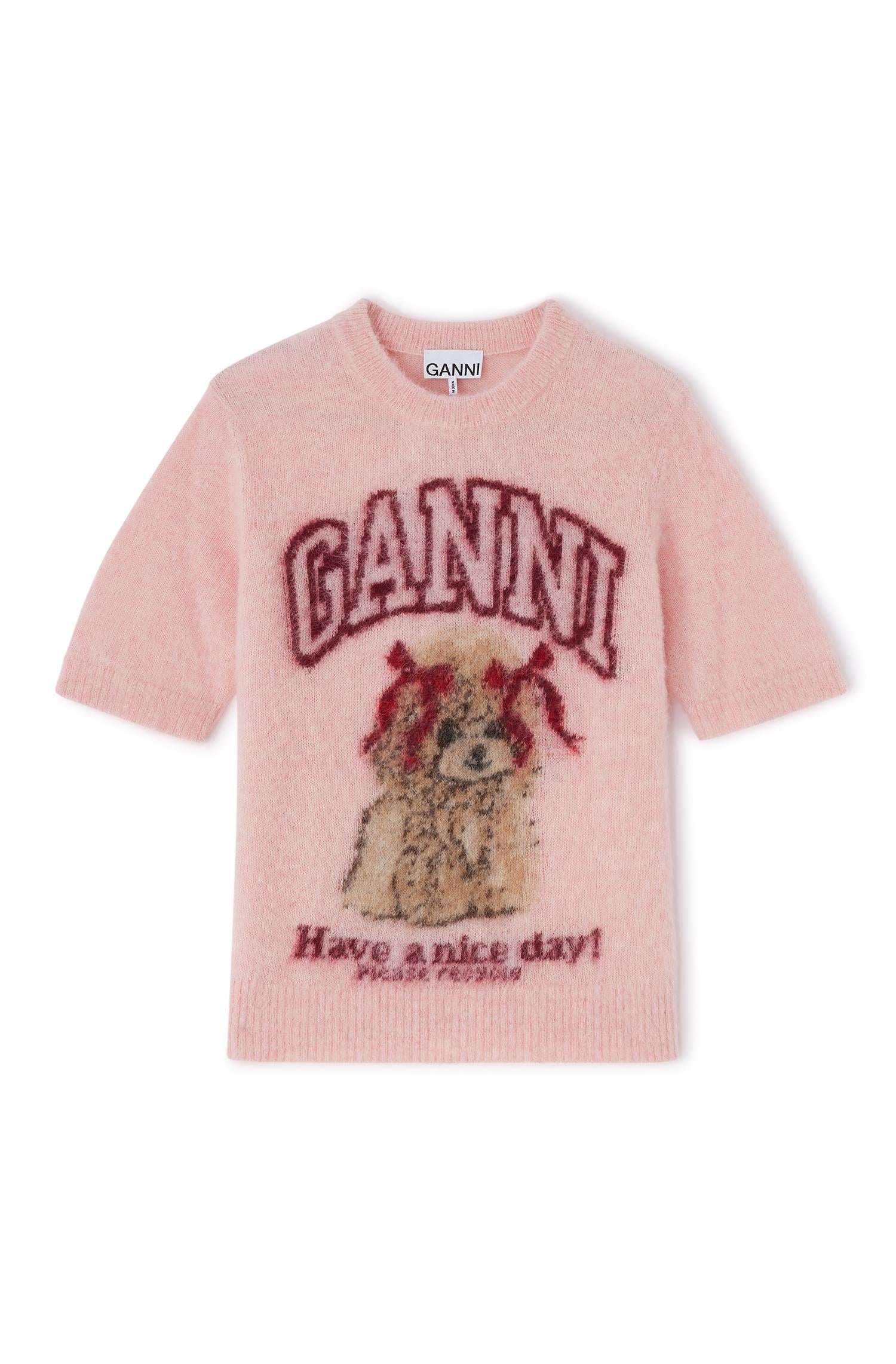 GANNI - Brushed Alpaca Graphic T Shirt - Chalk Pink