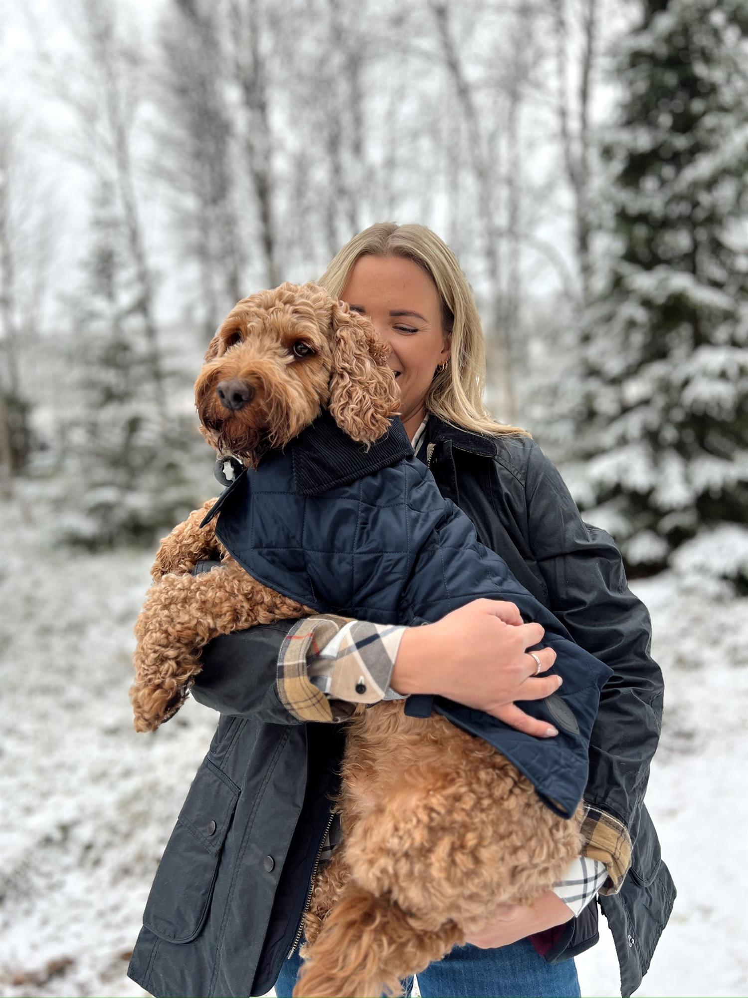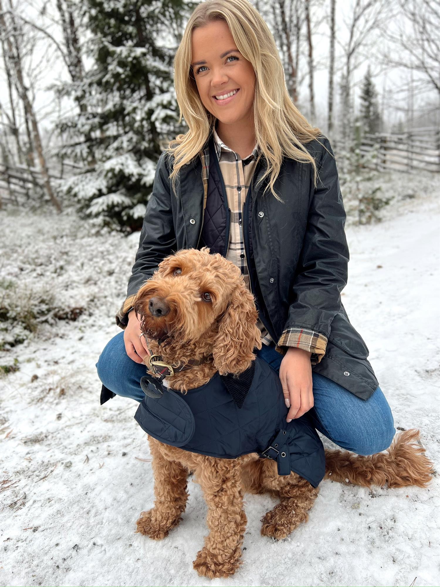 Nydelig kåpe til hund. Har fin cord "krage" øverst i halsen som kan brettes bak.
