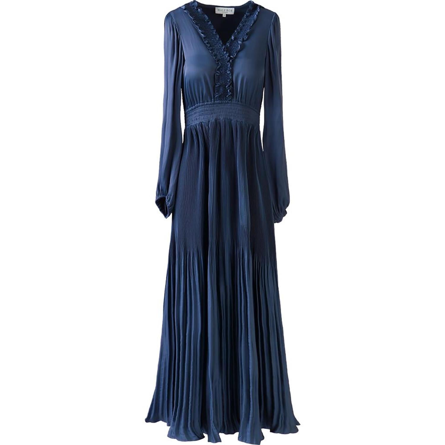 Feminin maxikjole i myk, vasket charmeuse med nydelig fall. Kjolen har smockdetaljer i halsen og livet, som gir en flatterende passform. Ermene er 3/4-lange med strikk nederst, og det voluminøse skjørtet har dype legg som gir ekstra bevegelse og struktur. Lengde: 137 cm fra skulder til nederkant (HPS).