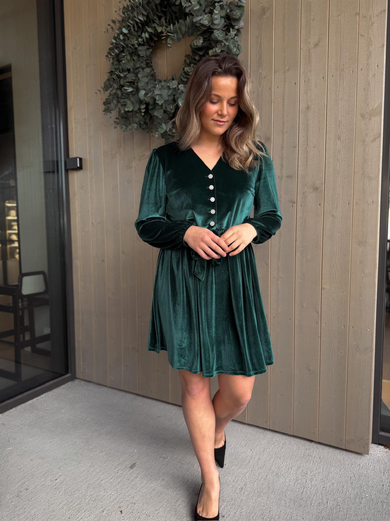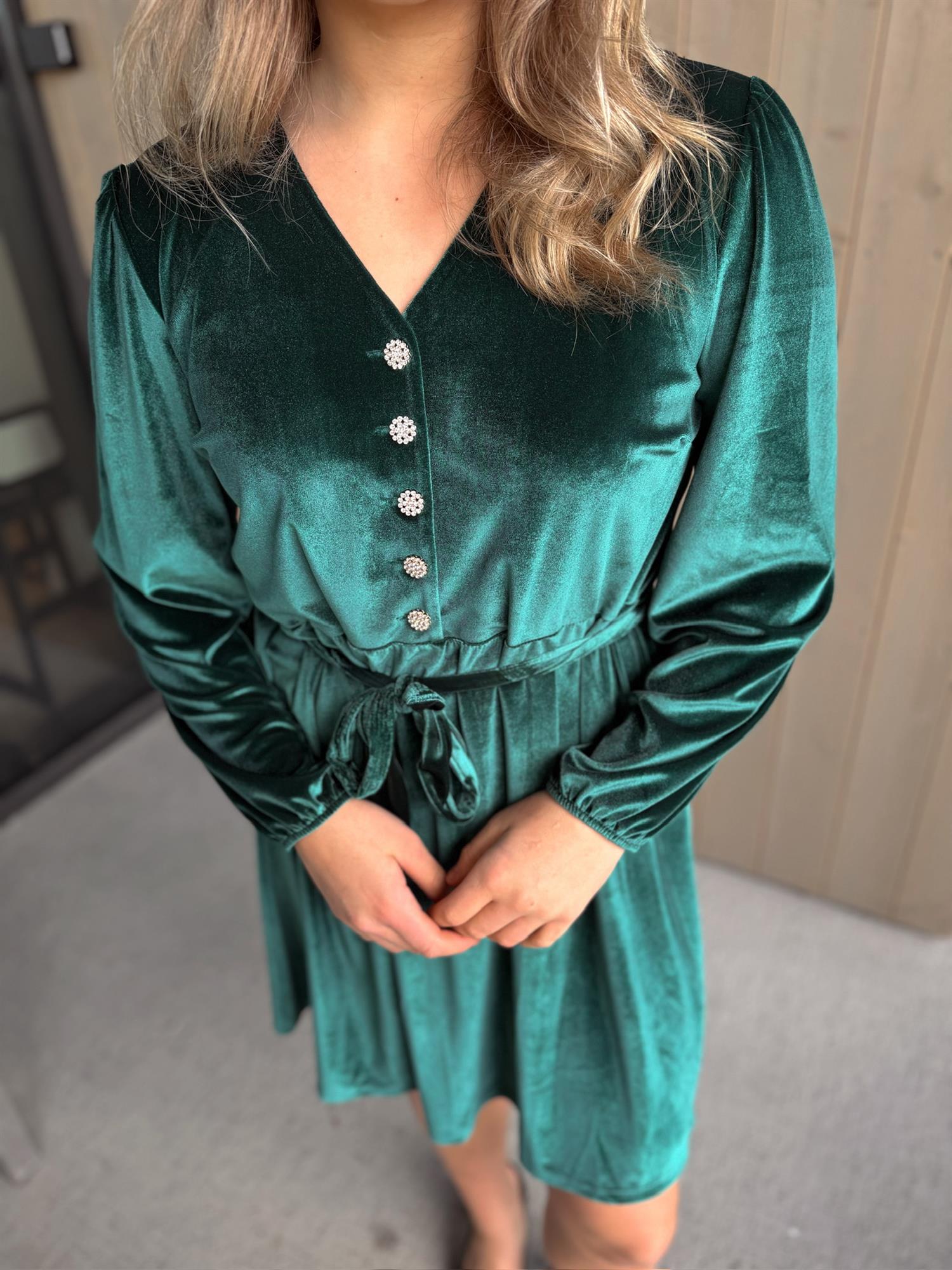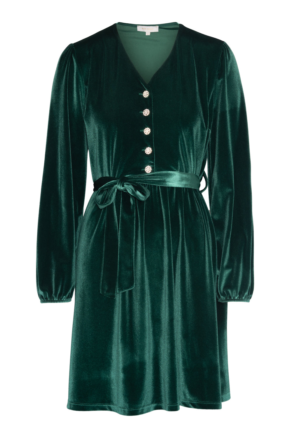 Rah Oslo - Velvet Dress Short w/ Button - Green 590