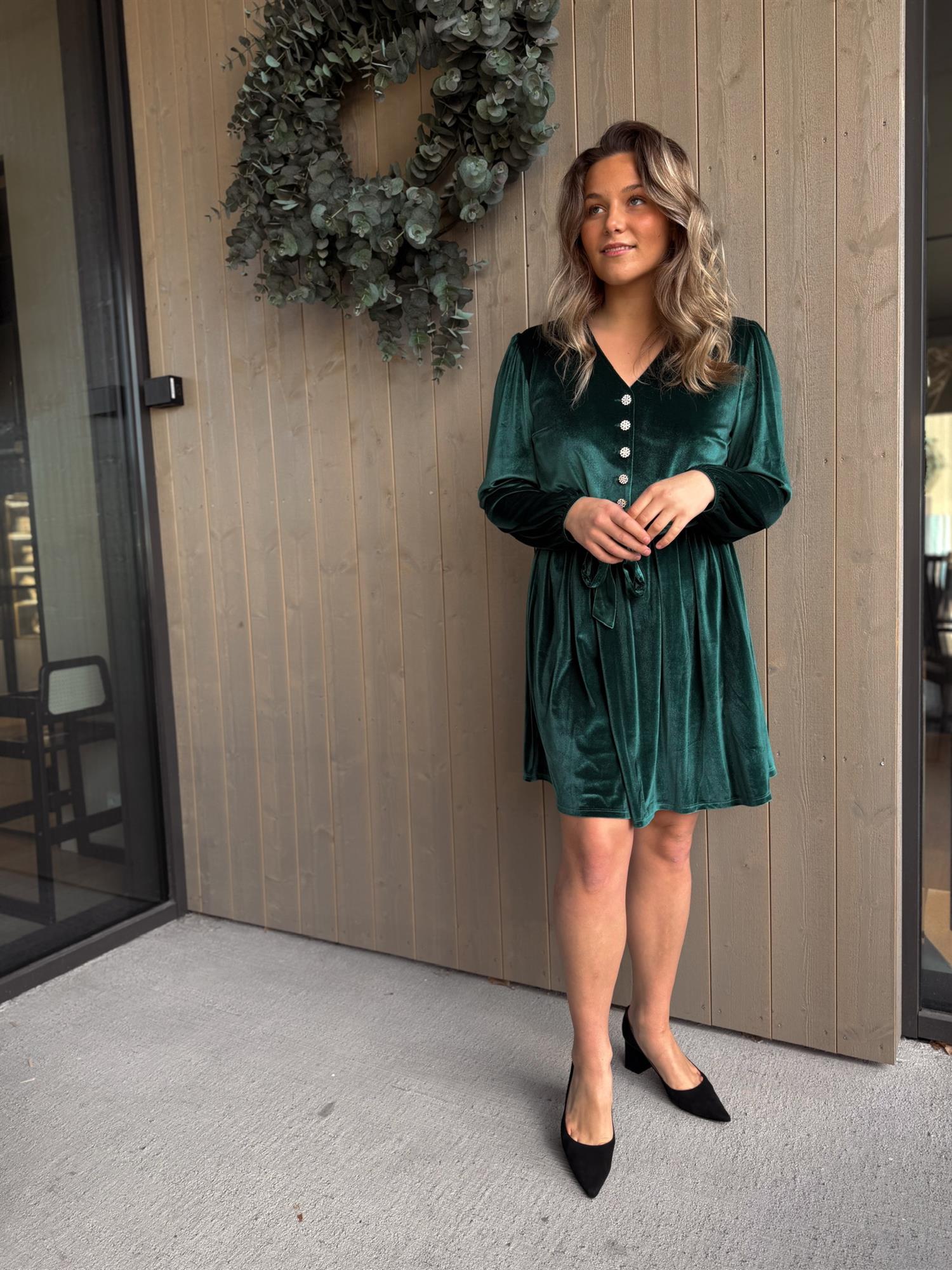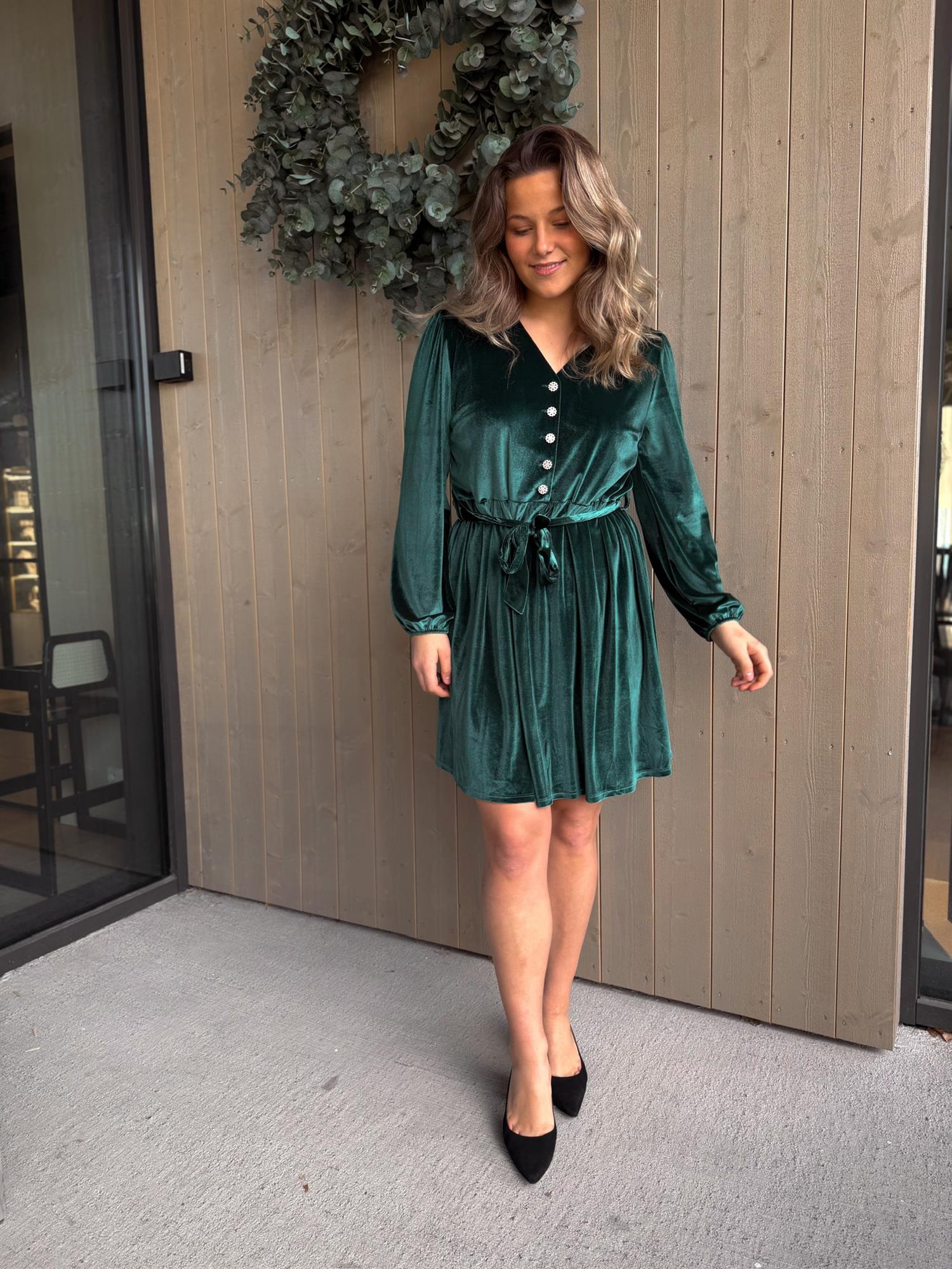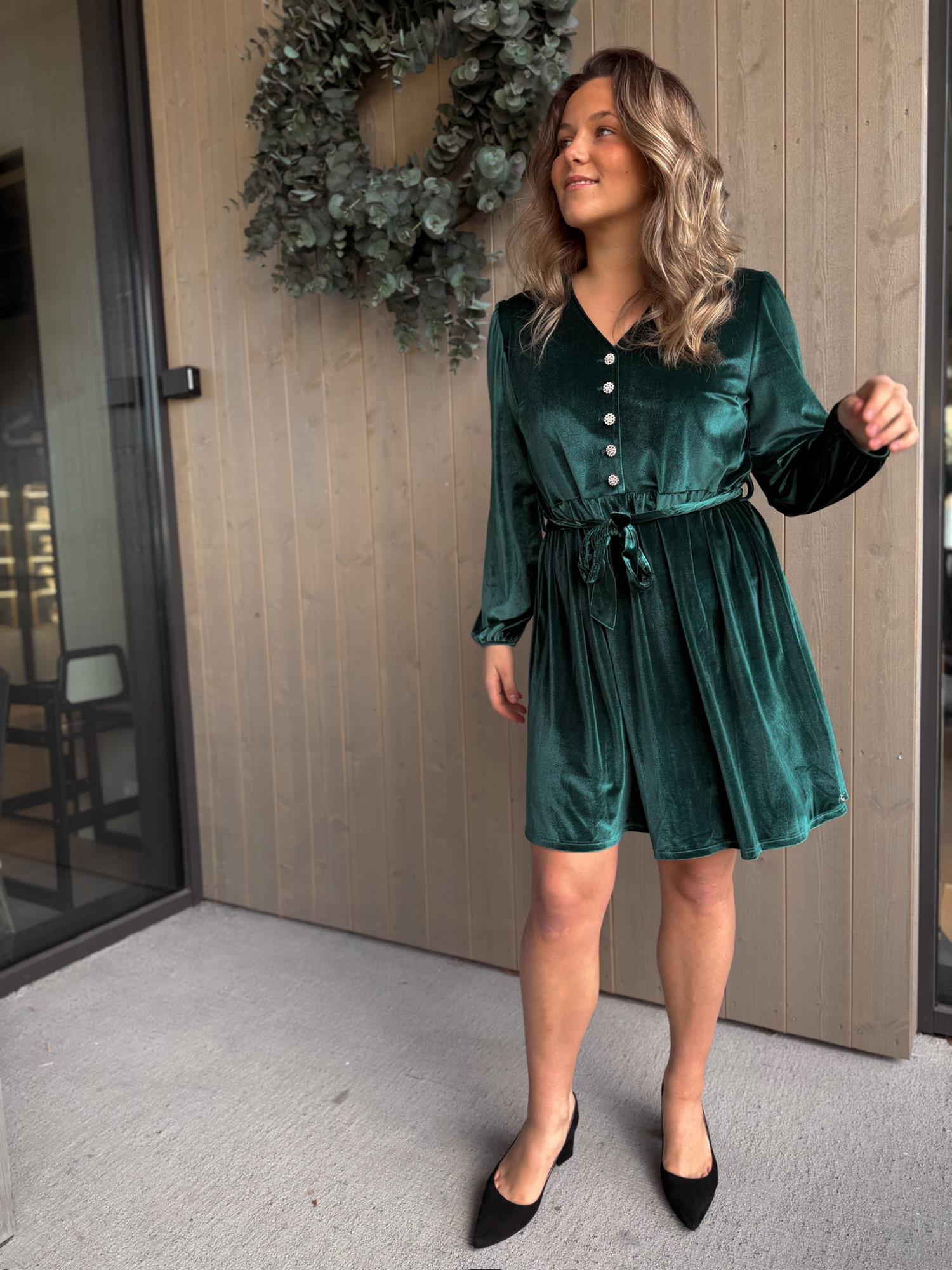 Rah Oslo - Velvet Dress Short w/ Button - Green 590