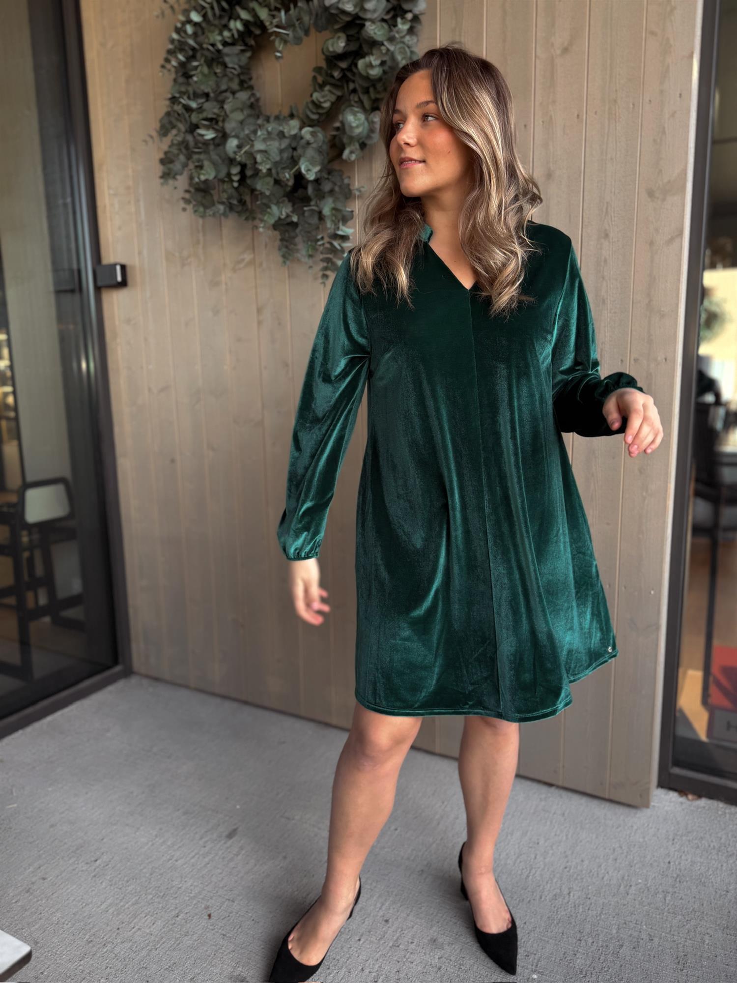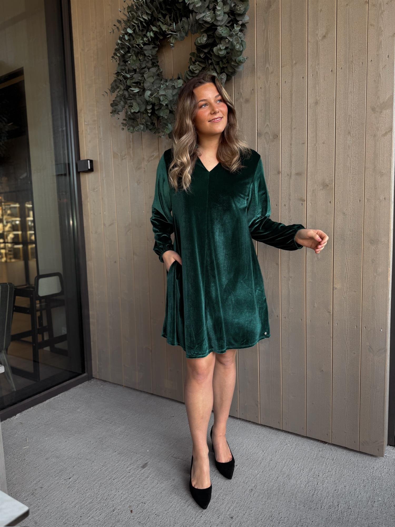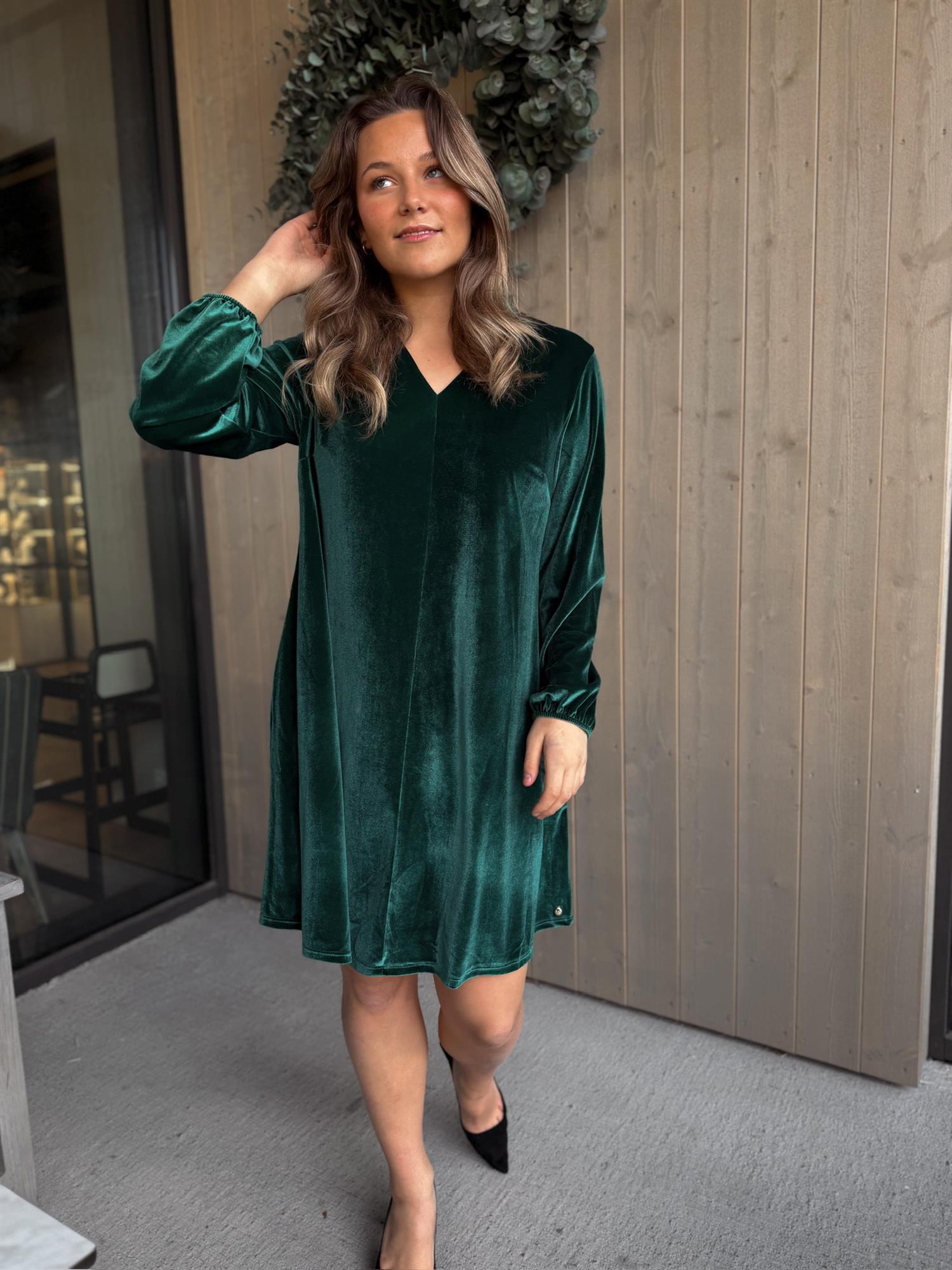 Rah Oslo - Velvet Dress Short V-Neck - Green 590