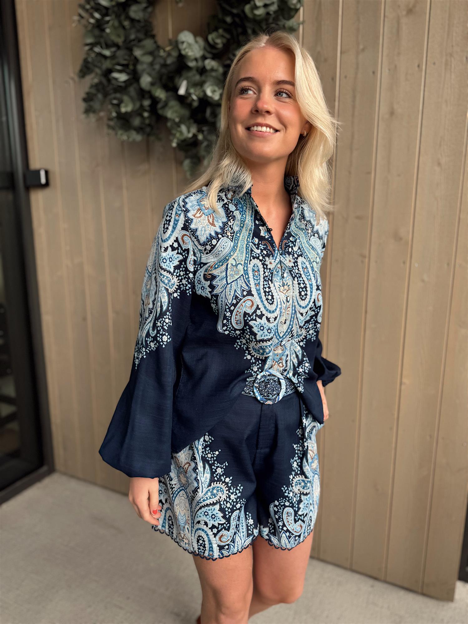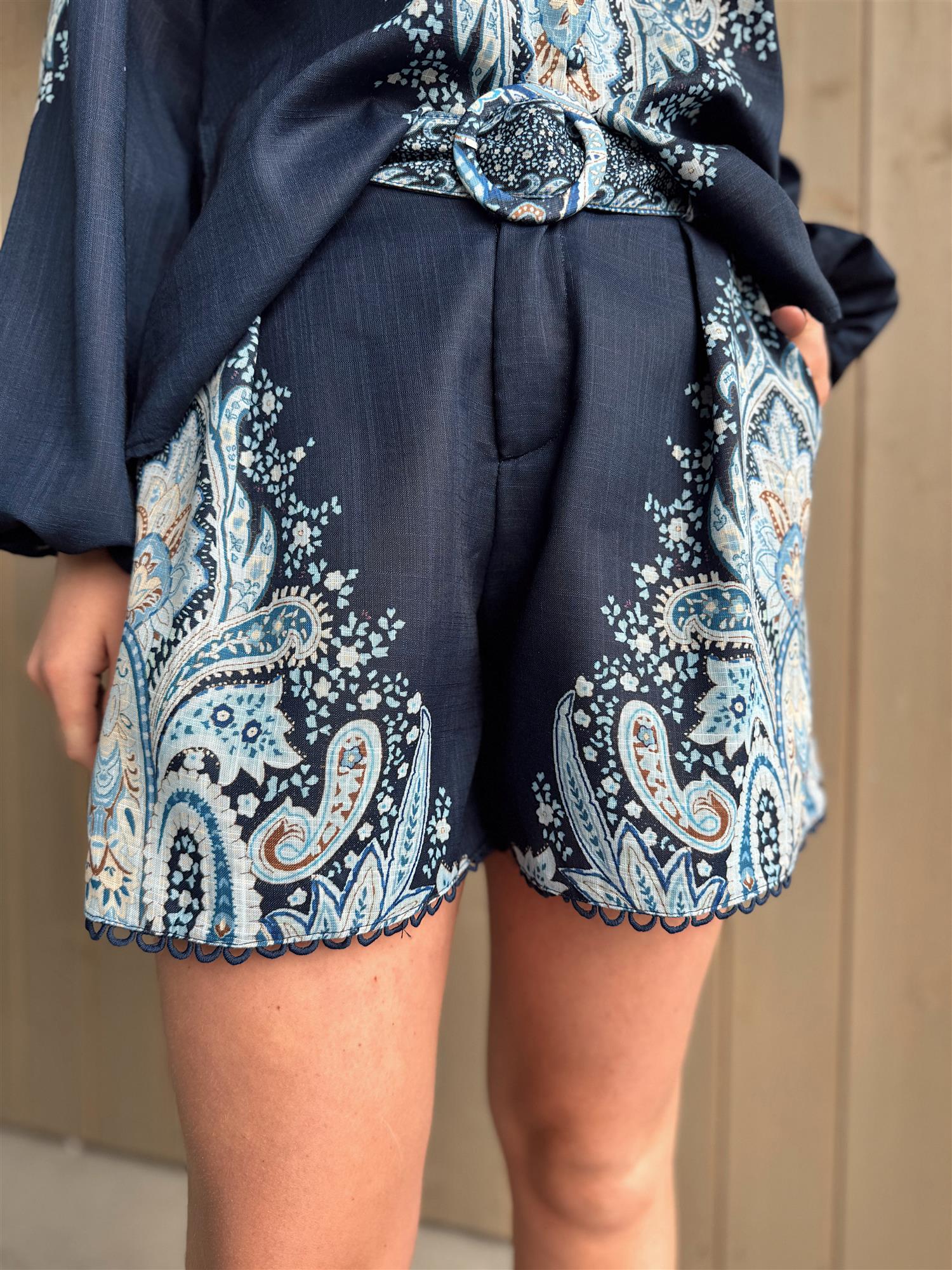 Denne drømmende shortsen fra From Paris With Love kombinerer komfort med sofistikert bohemsk eleganse. Med sitt detaljrike paisley- og blomsterinspirerte print gir den et eksklusivt og gjennomført uttrykk – perfekt til både hverdags og feriedager.