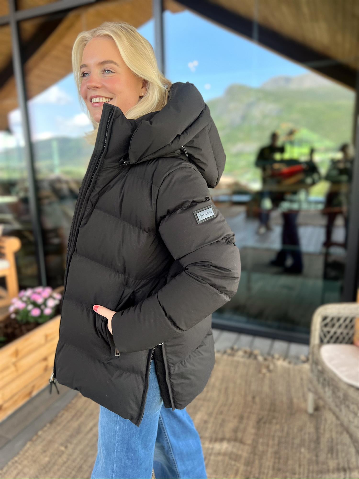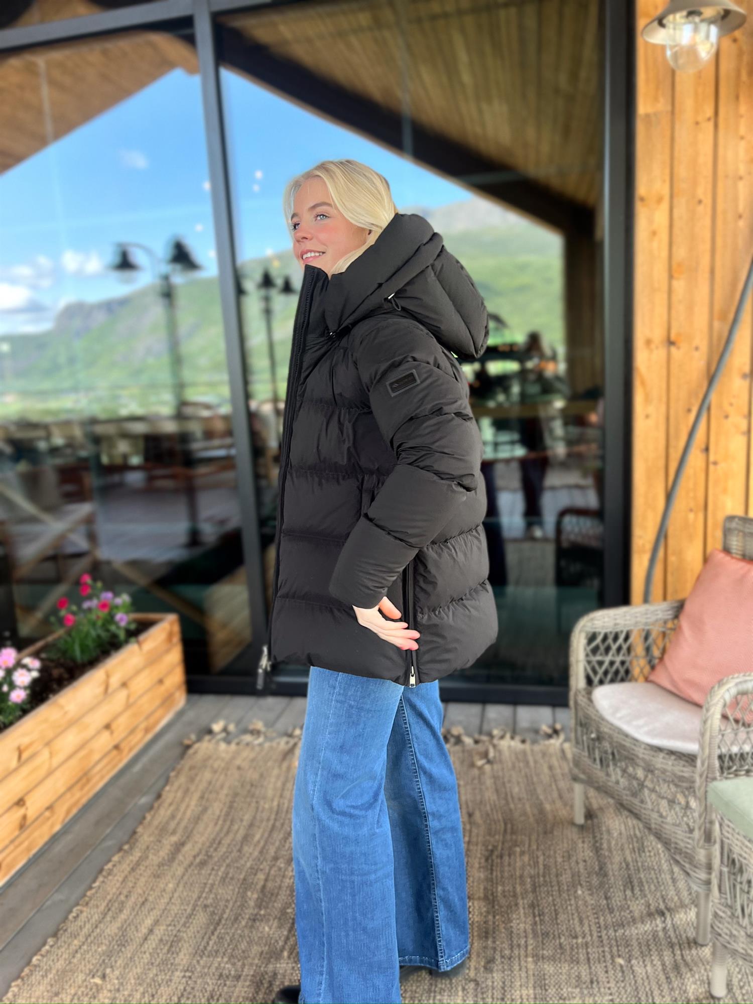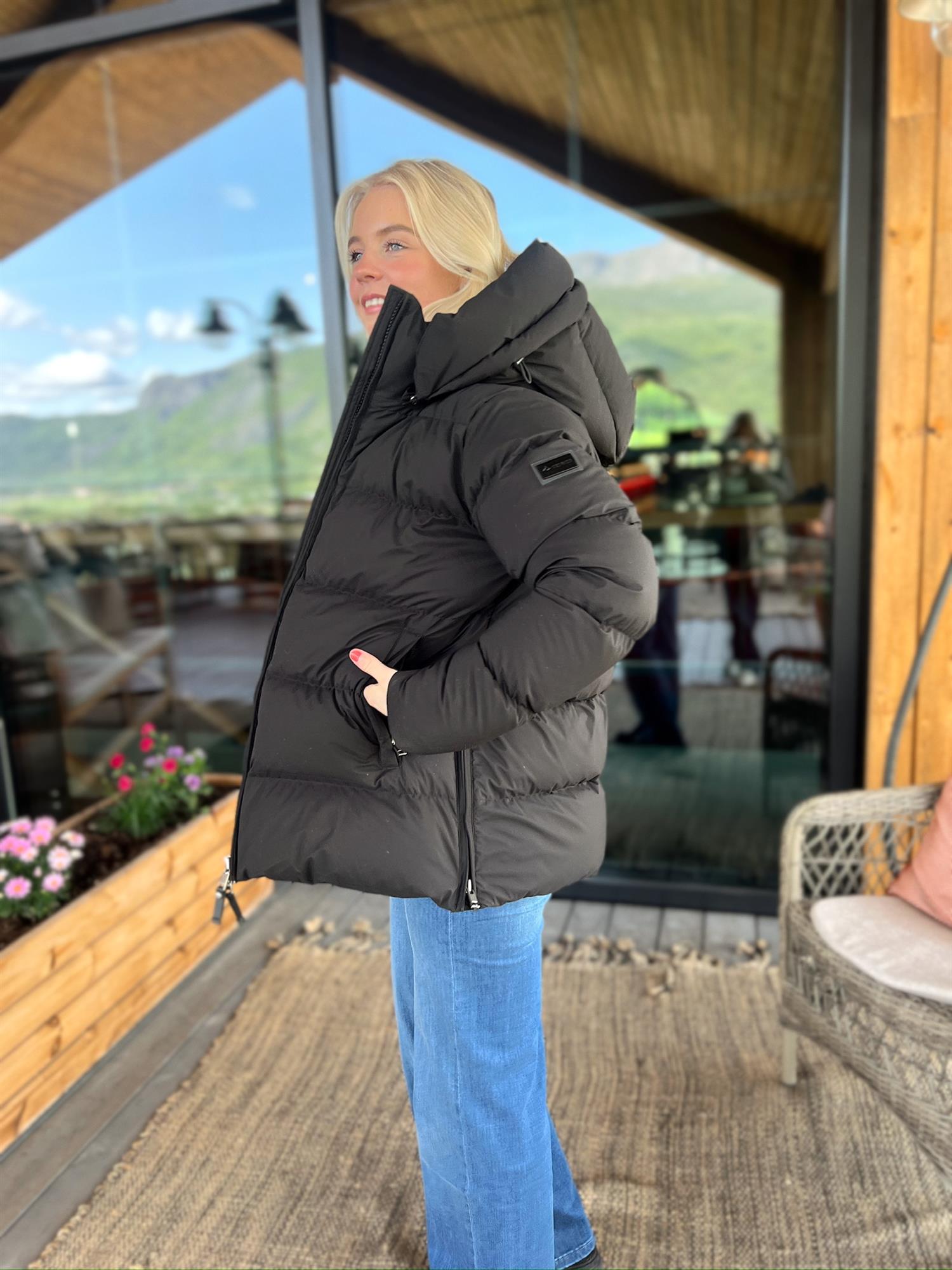 Bona-jakken er designet for å gi deg både stil og funksjon – perfekt til bruk i byen og på fjellet. Den korte modellen med avtagbar hette har en moderne, boxy passform og er fylt med 90/10 dun for optimal varme og komfort.