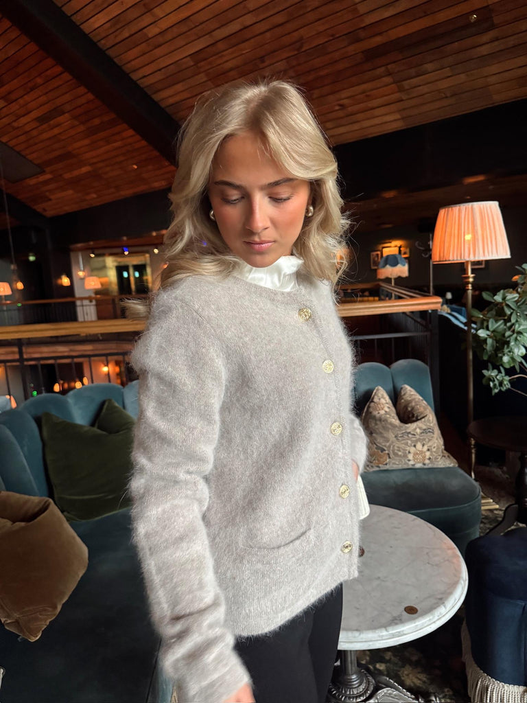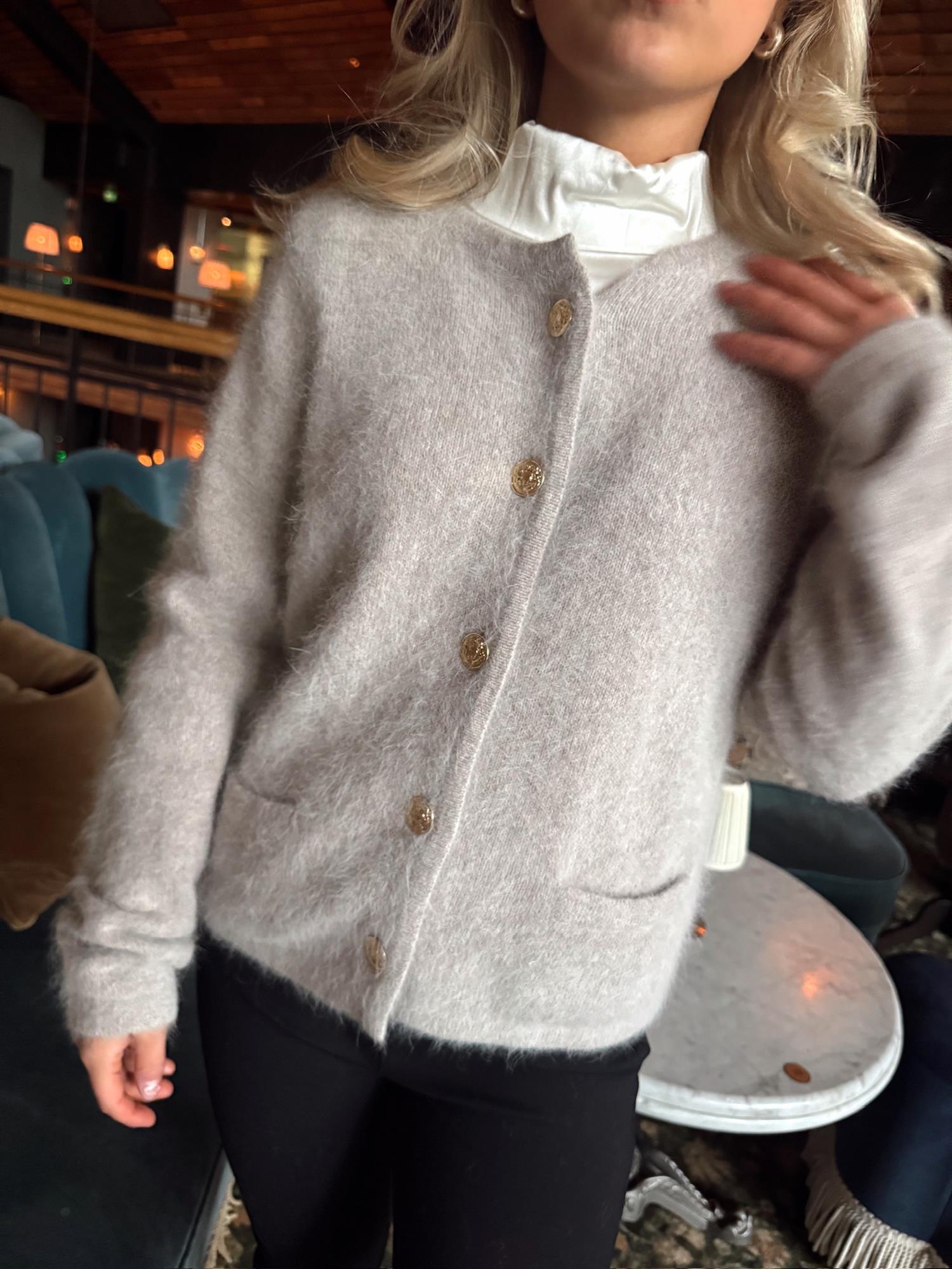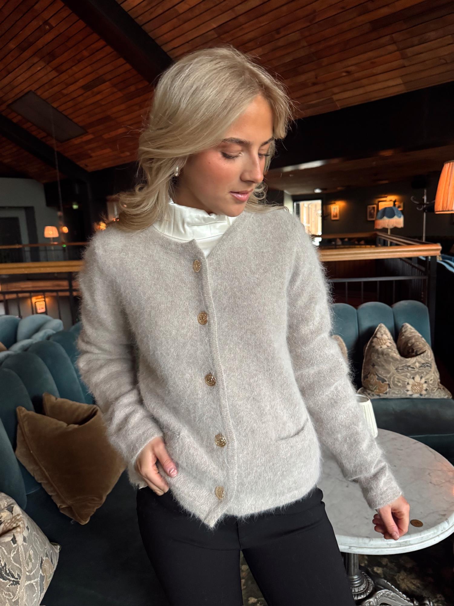 Klassisk cardigan i en myk og fluffy kvalitet. Den kjente angora-kvaliteten fra Ane Mone er alltid med i deres kolleksjon.